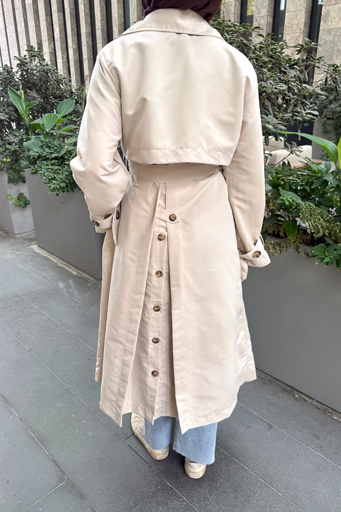 Arka Pile Detaylı Trençkot - Taş Rengi