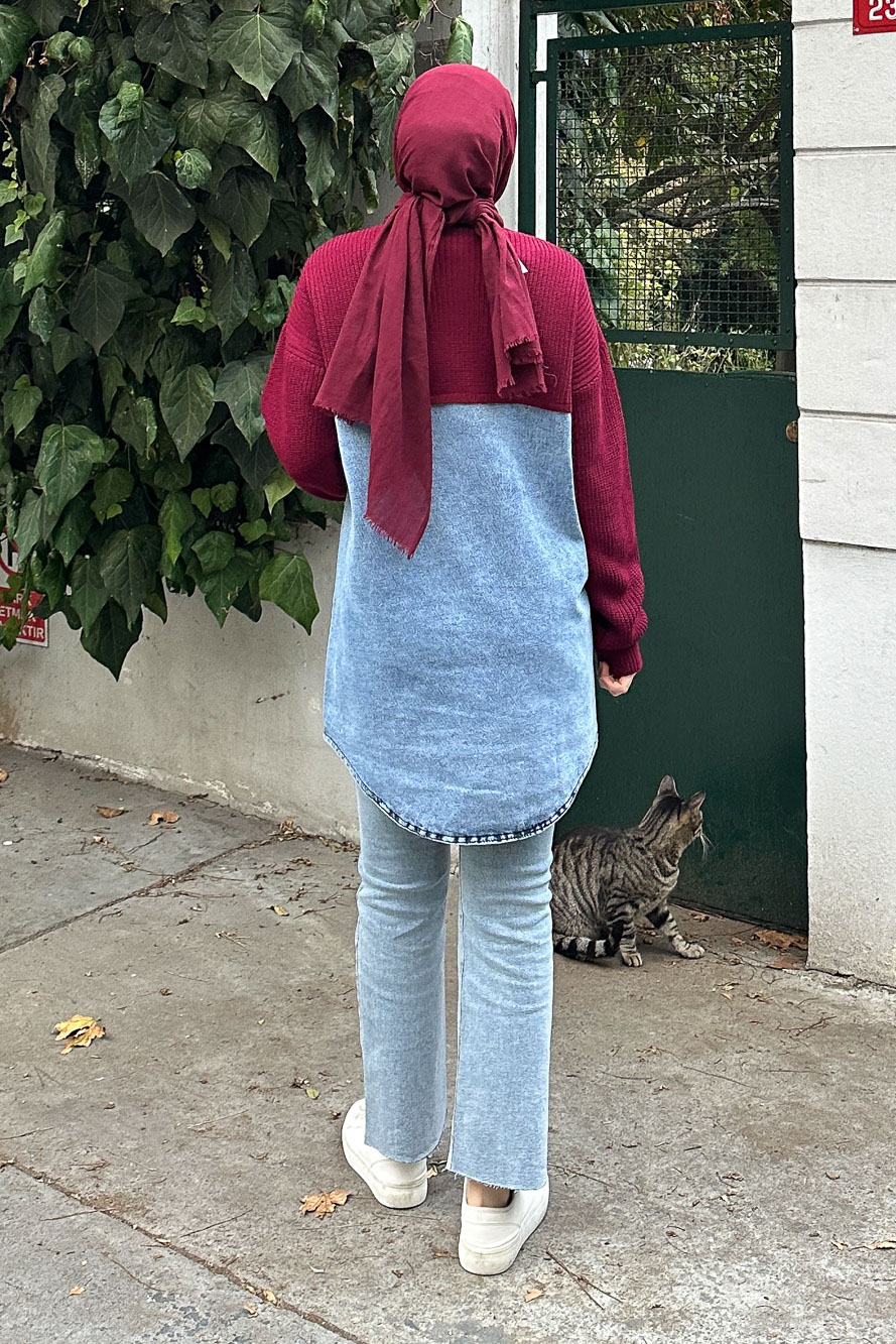 Kumaş:Triko-Denim Kalıp: Oversize Ön Uzunluk : 70 cm Arka Uzunluk: 85 cm Genişlik: 110 cm Standart Beden