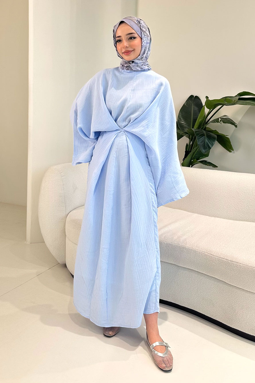Arya Çapraz Biyeli Elbise - Bebe Mavisi