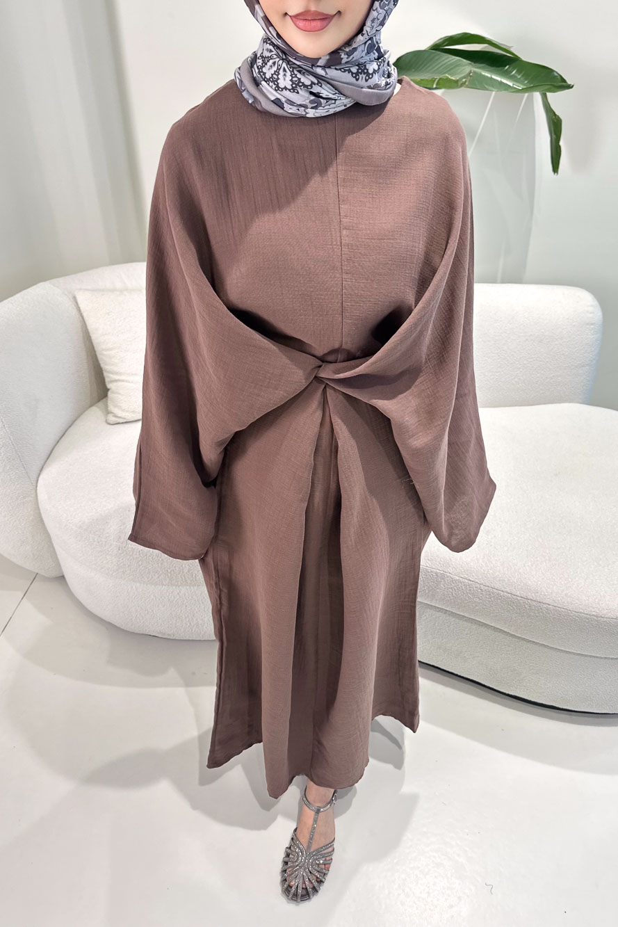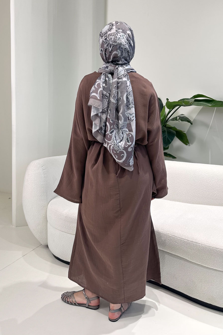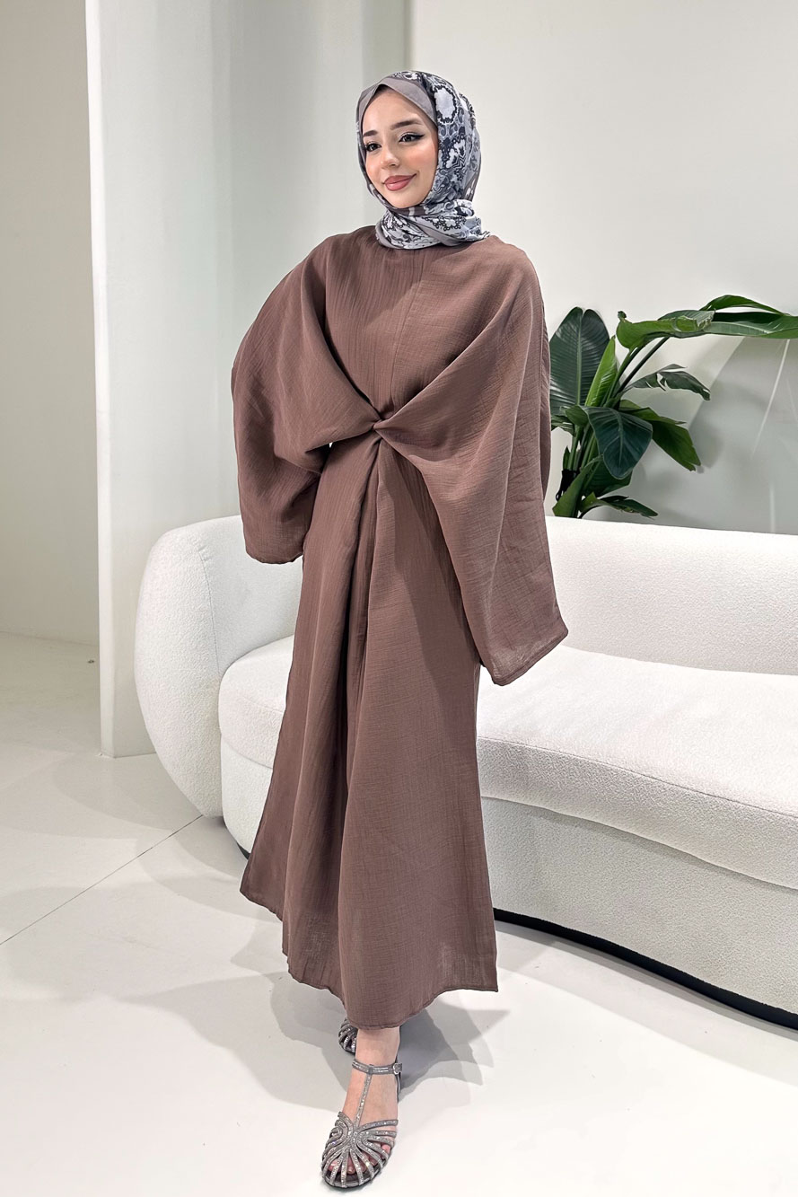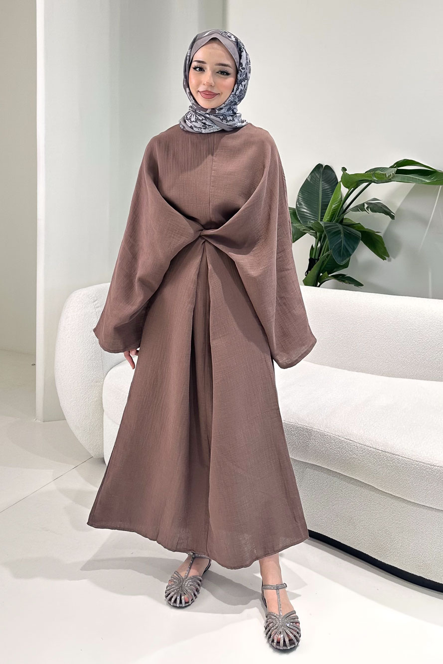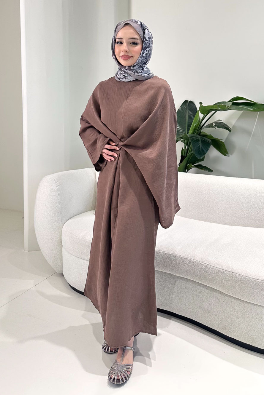 Arya Çapraz Biyeli Elbise - Kahverengi