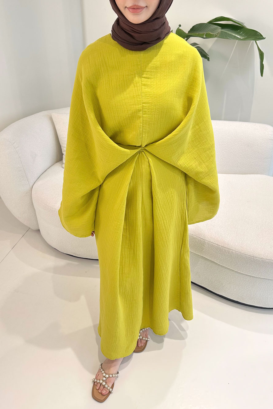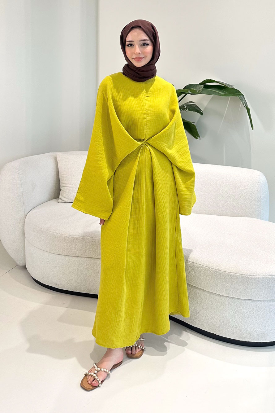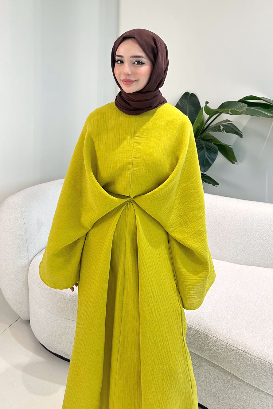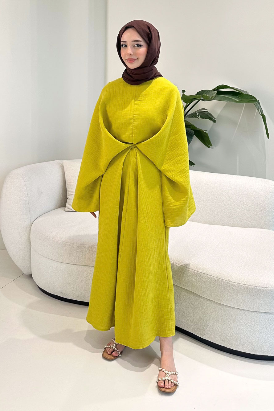 Arya Çapraz Biyeli Elbise - Yağ Yeşili