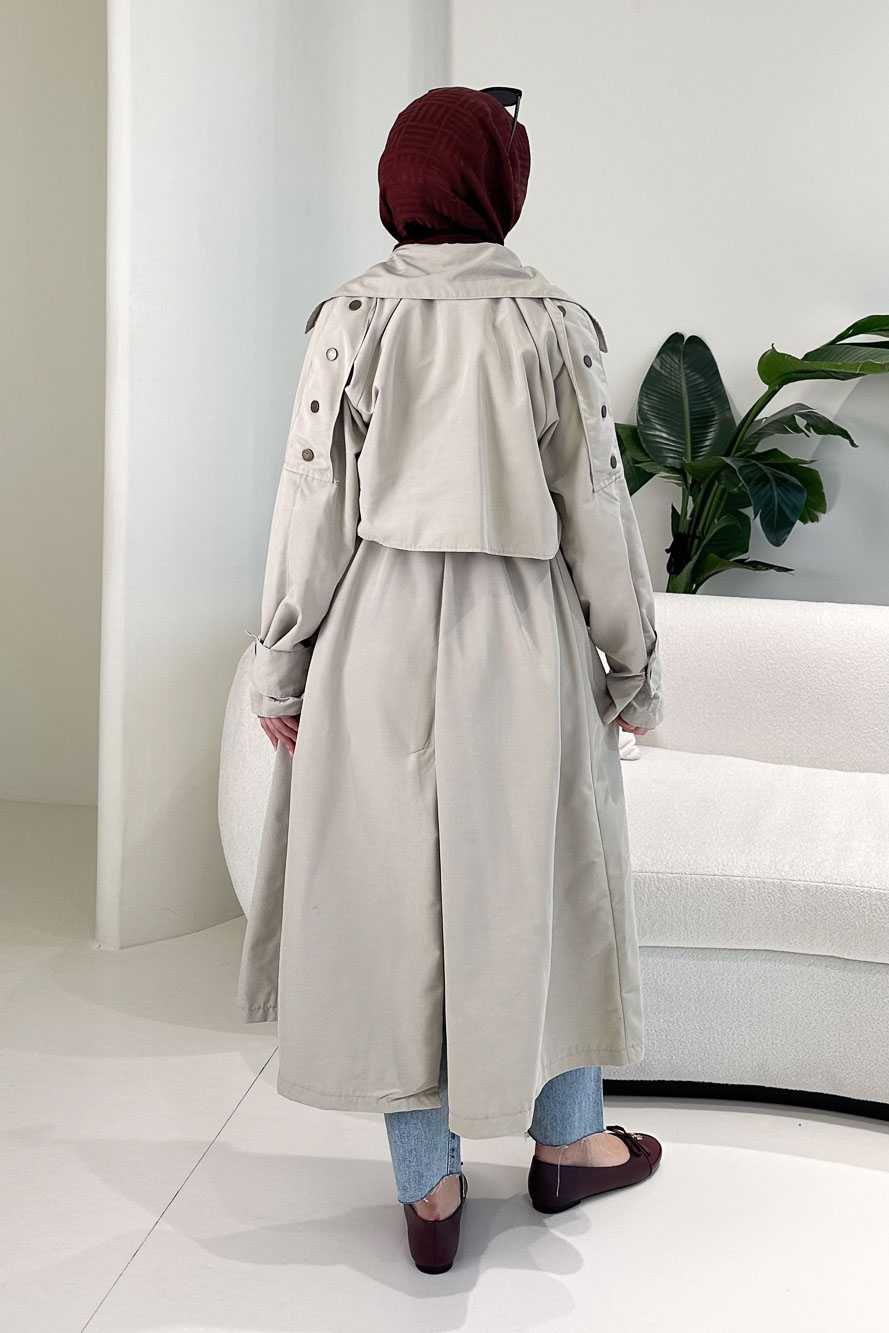 Yujin Yan Çıtçıt Detaylı Kapüşonlu Trençkot - Haki