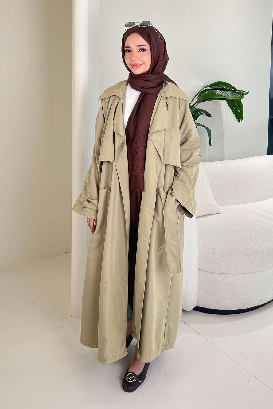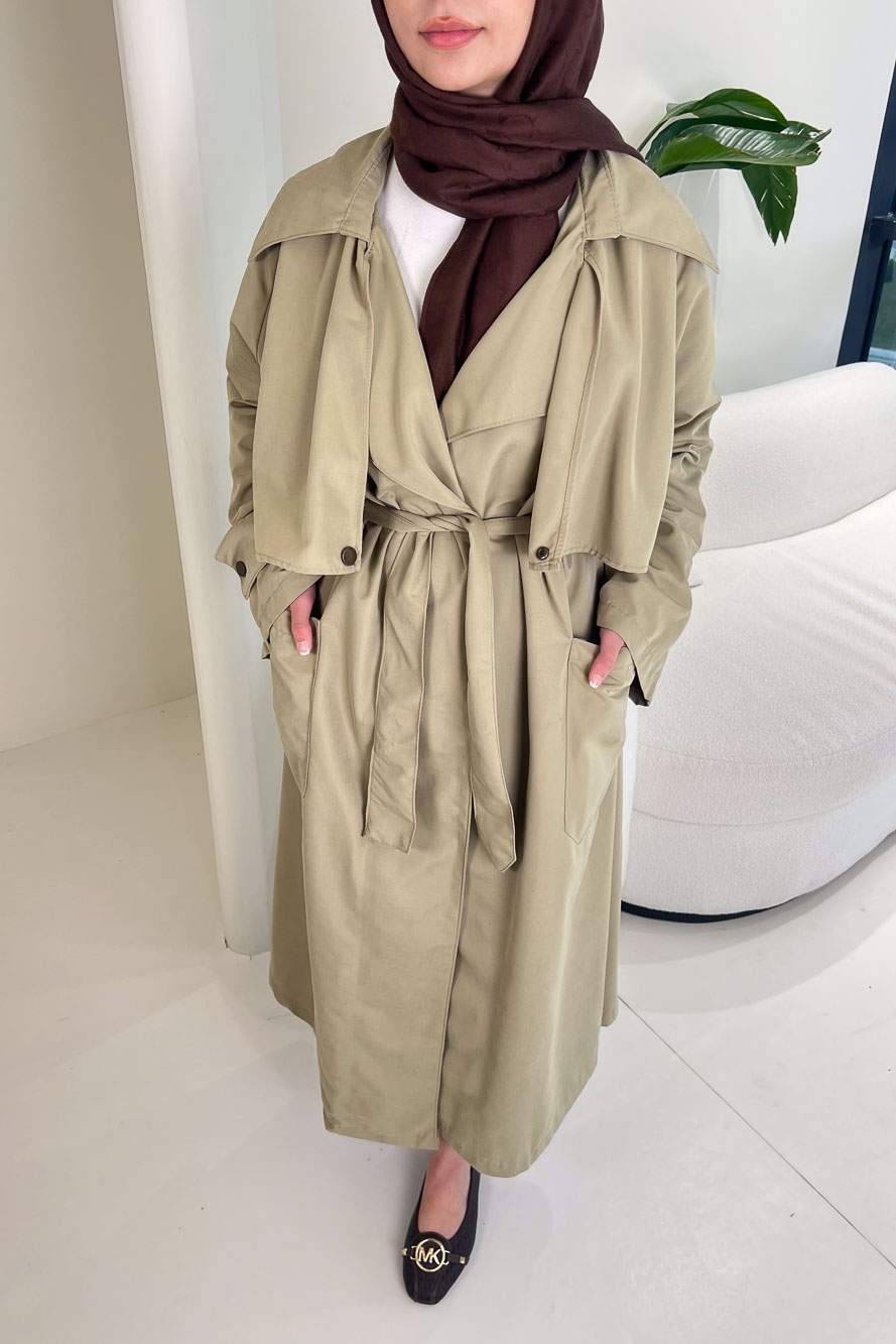Ash Apoletli Trençkot - Yağ Yeşili