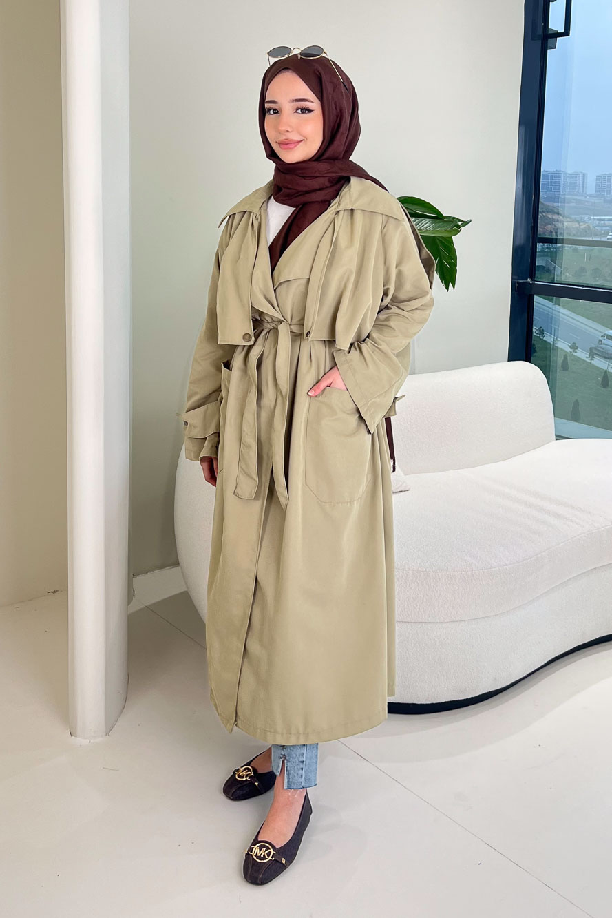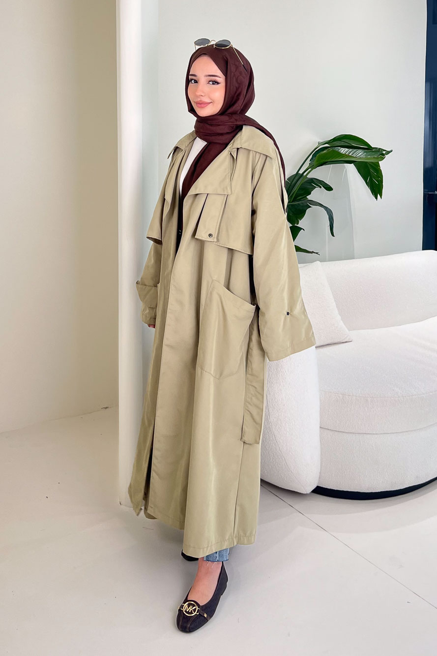 Yujin Yan Çıtçıt Detaylı Kapüşonlu Trençkot - Haki