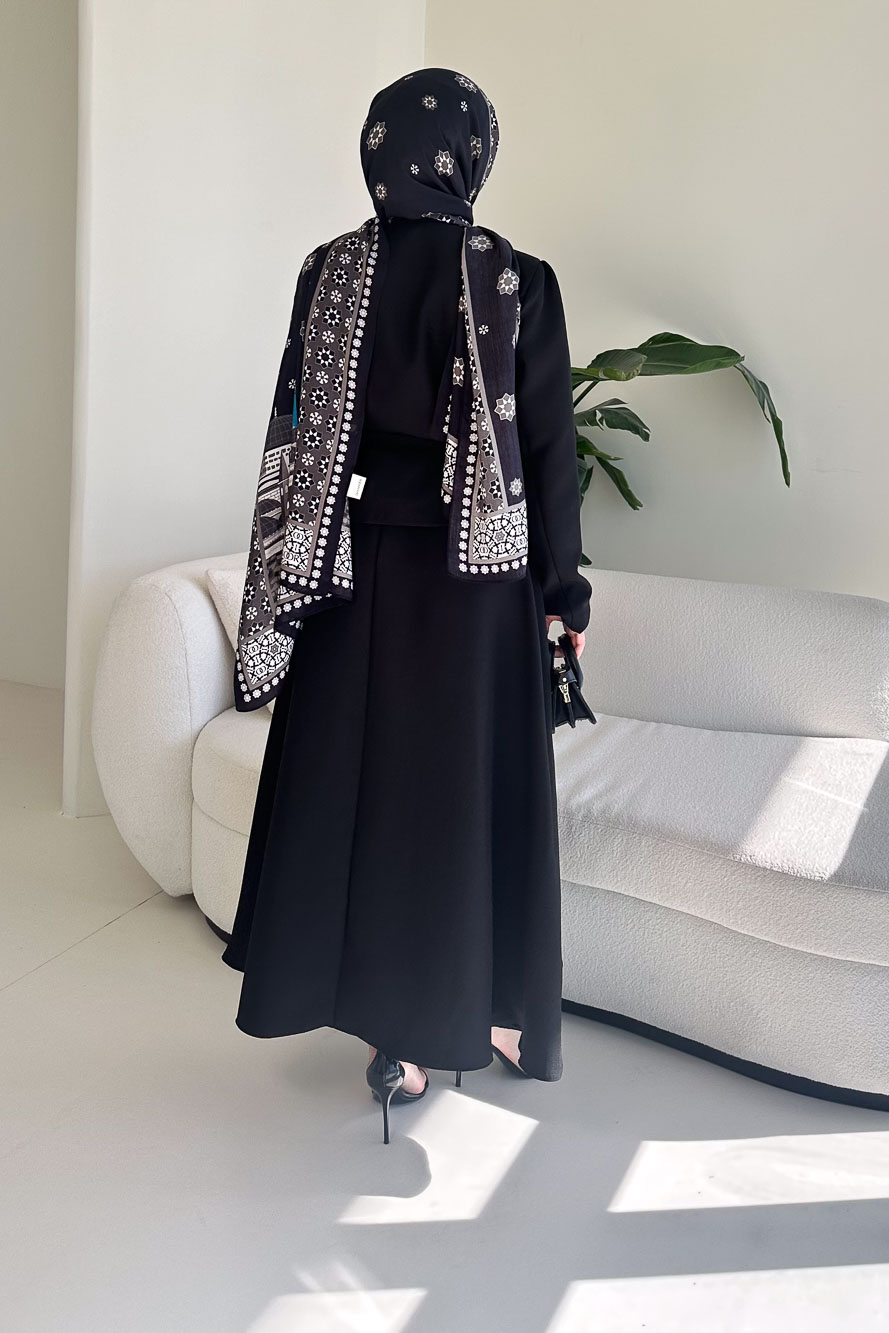 Minimal çizgisi ve gizli düğme detayıyla güçlü ve zarif bir siluet sunar.
