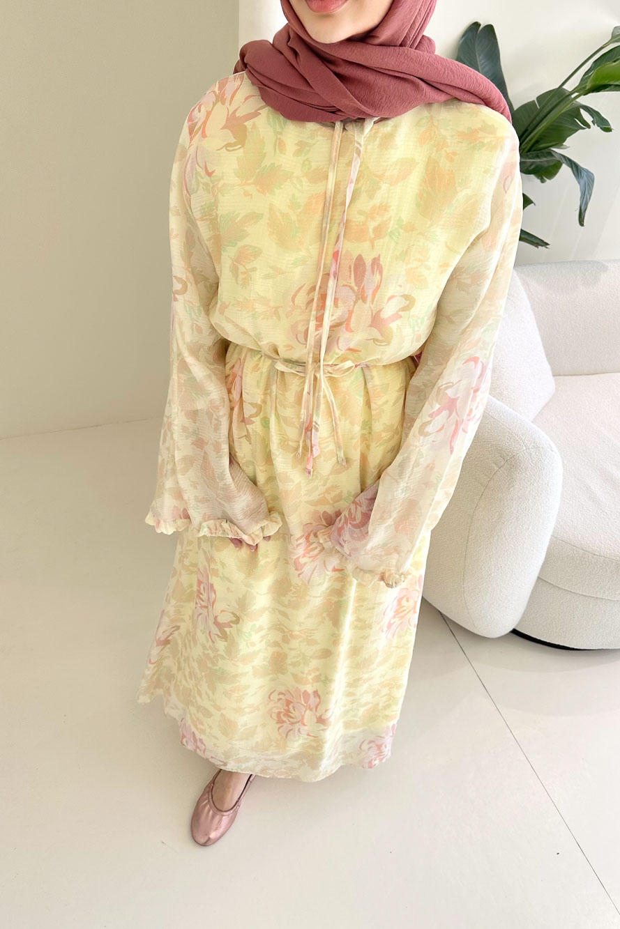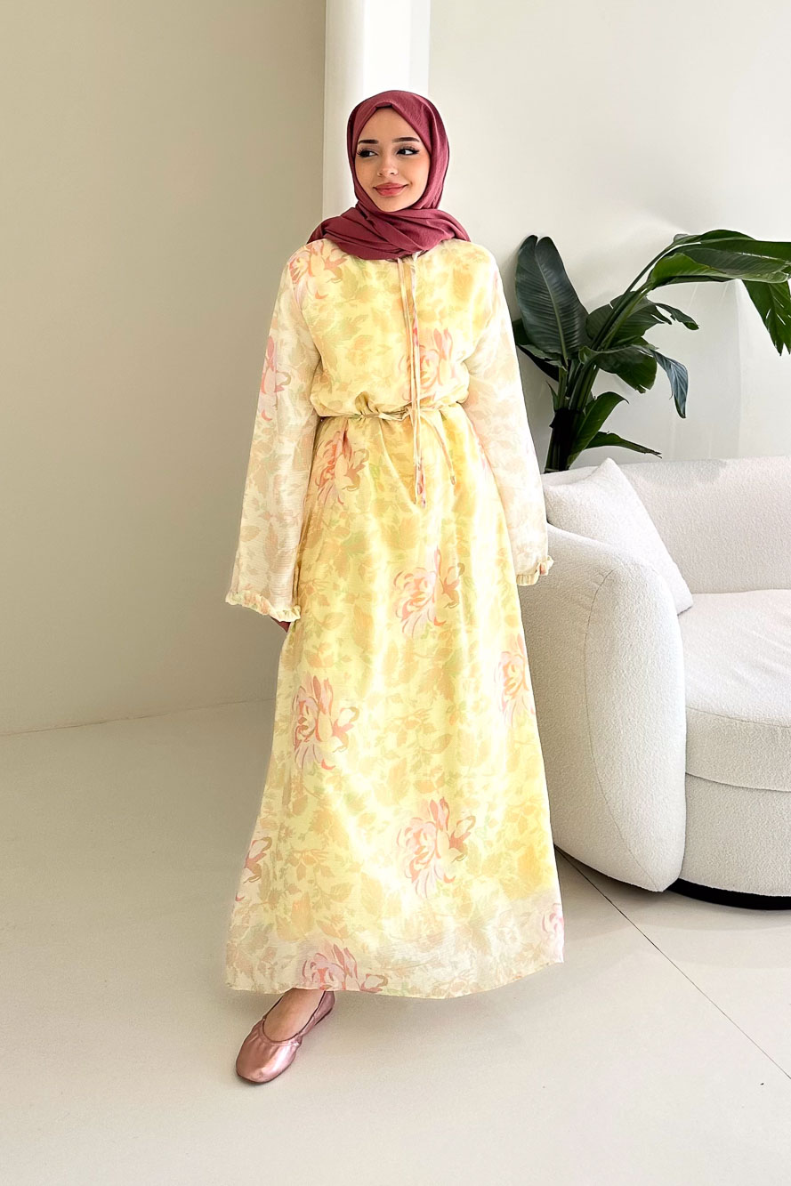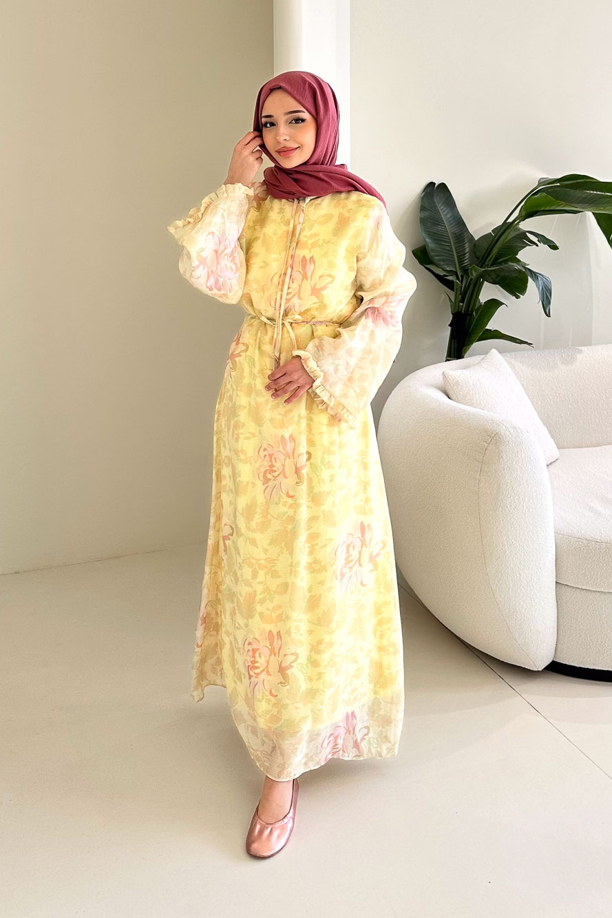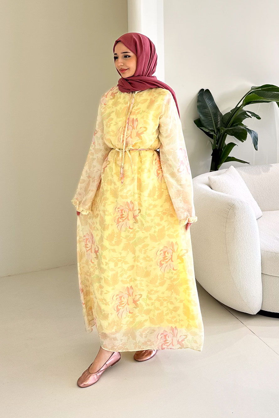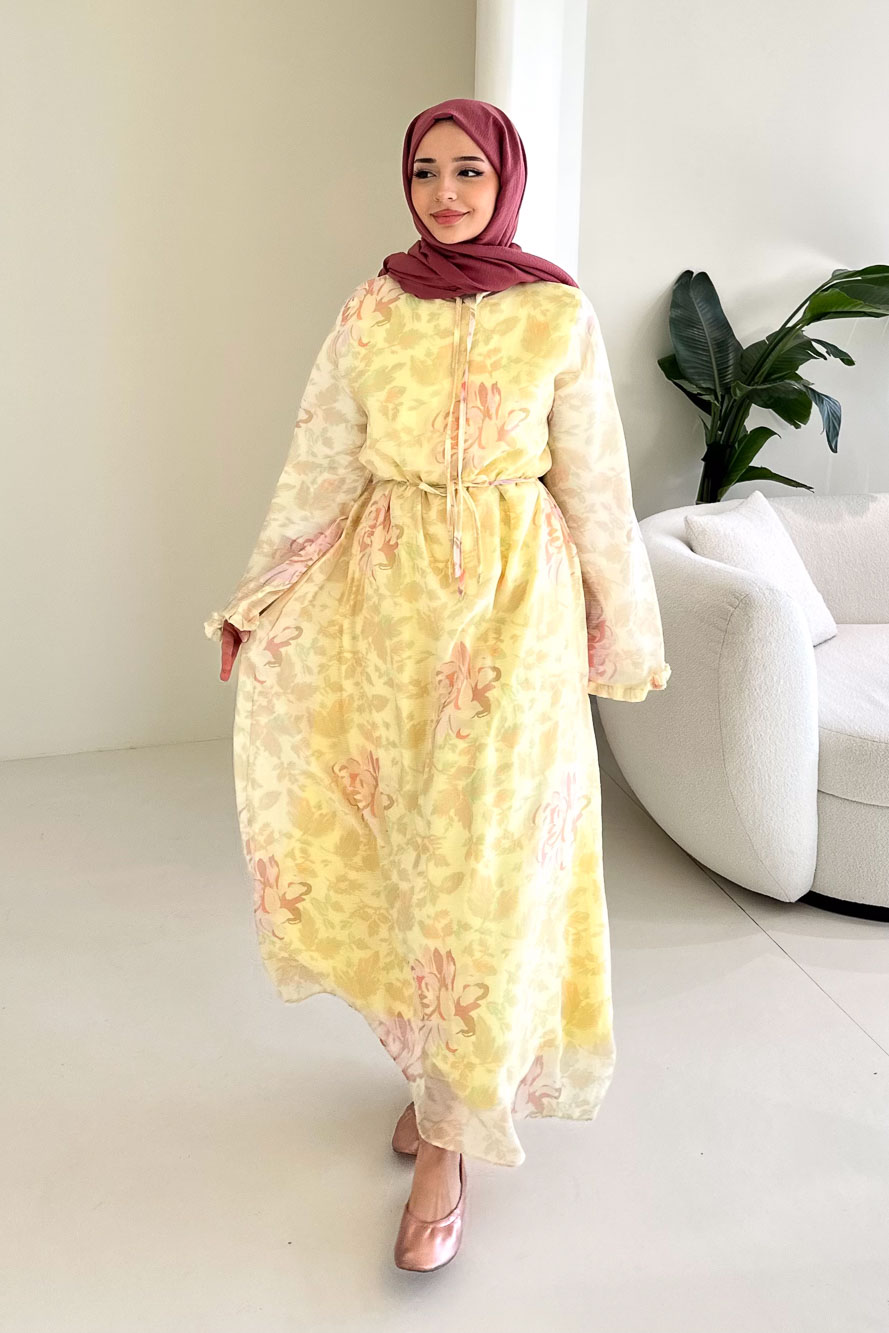 Aurora Çiçekli Şifon Elbise - Sarı