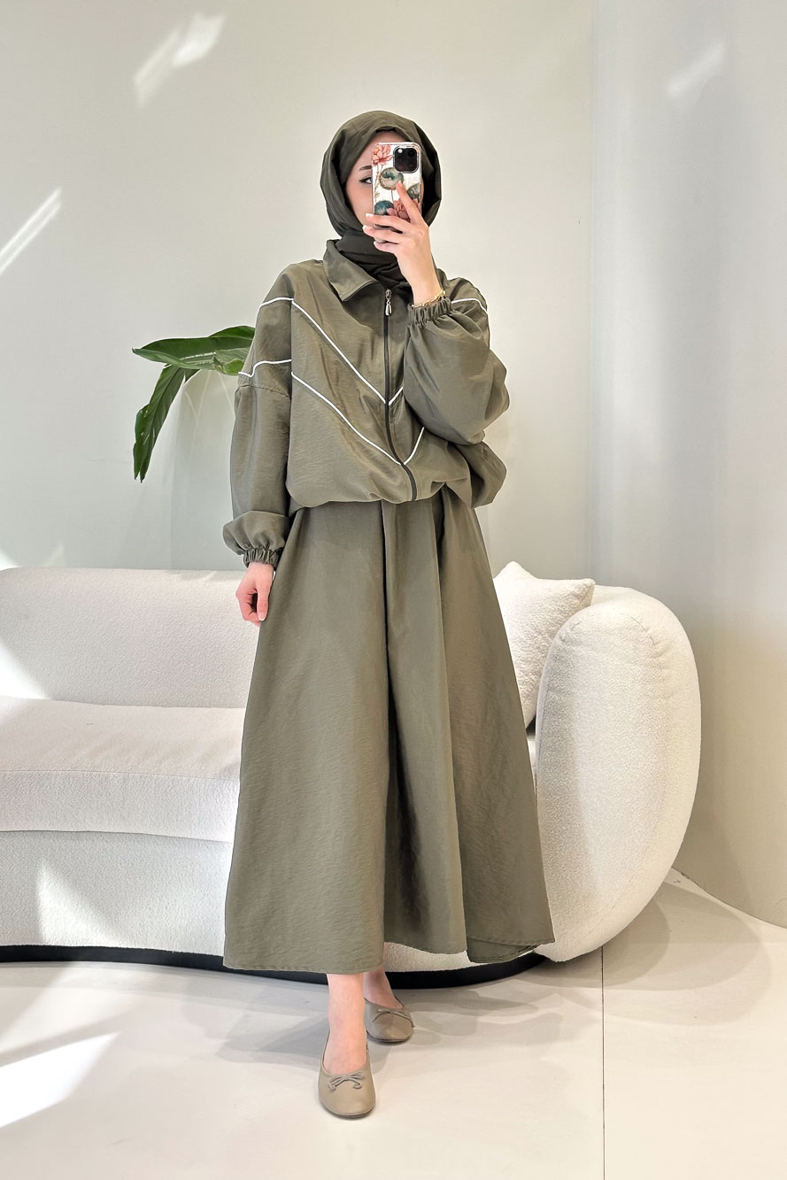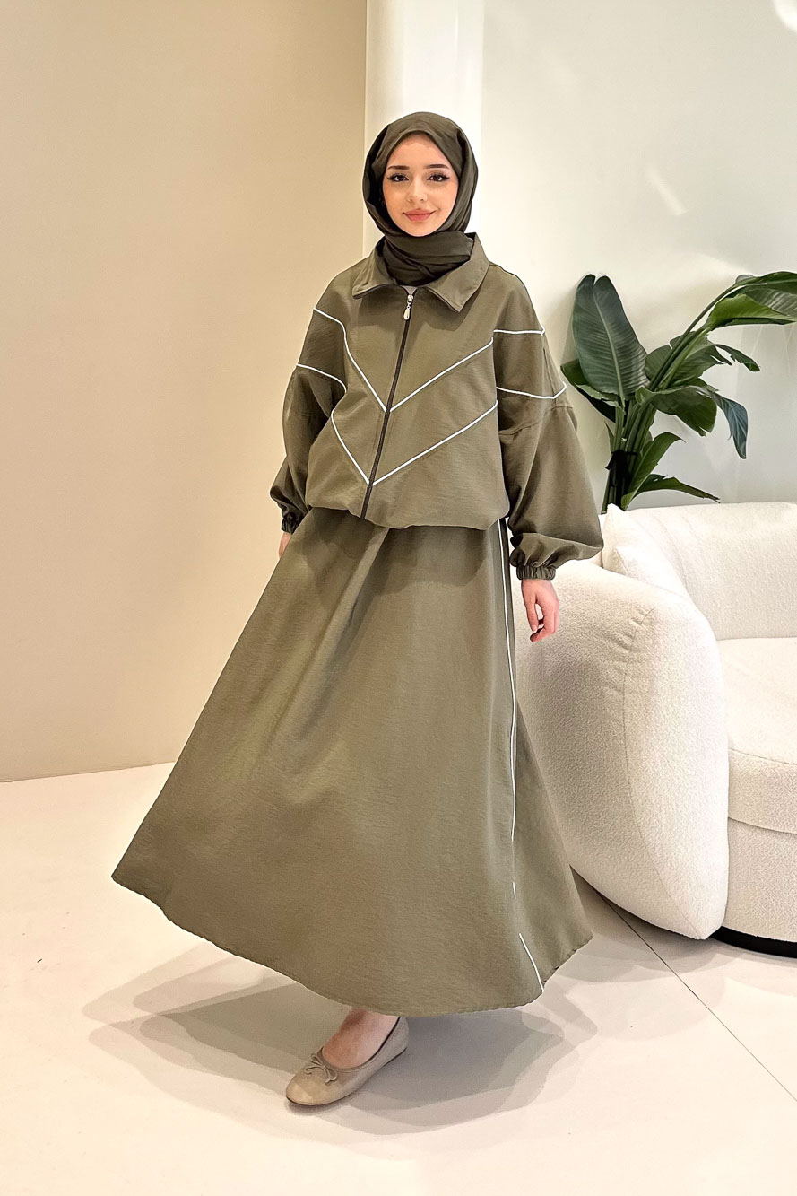 Aveline Biyeli Etek Takım - Haki