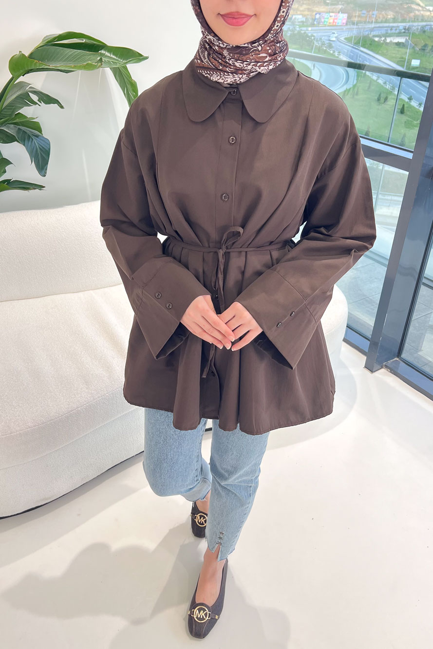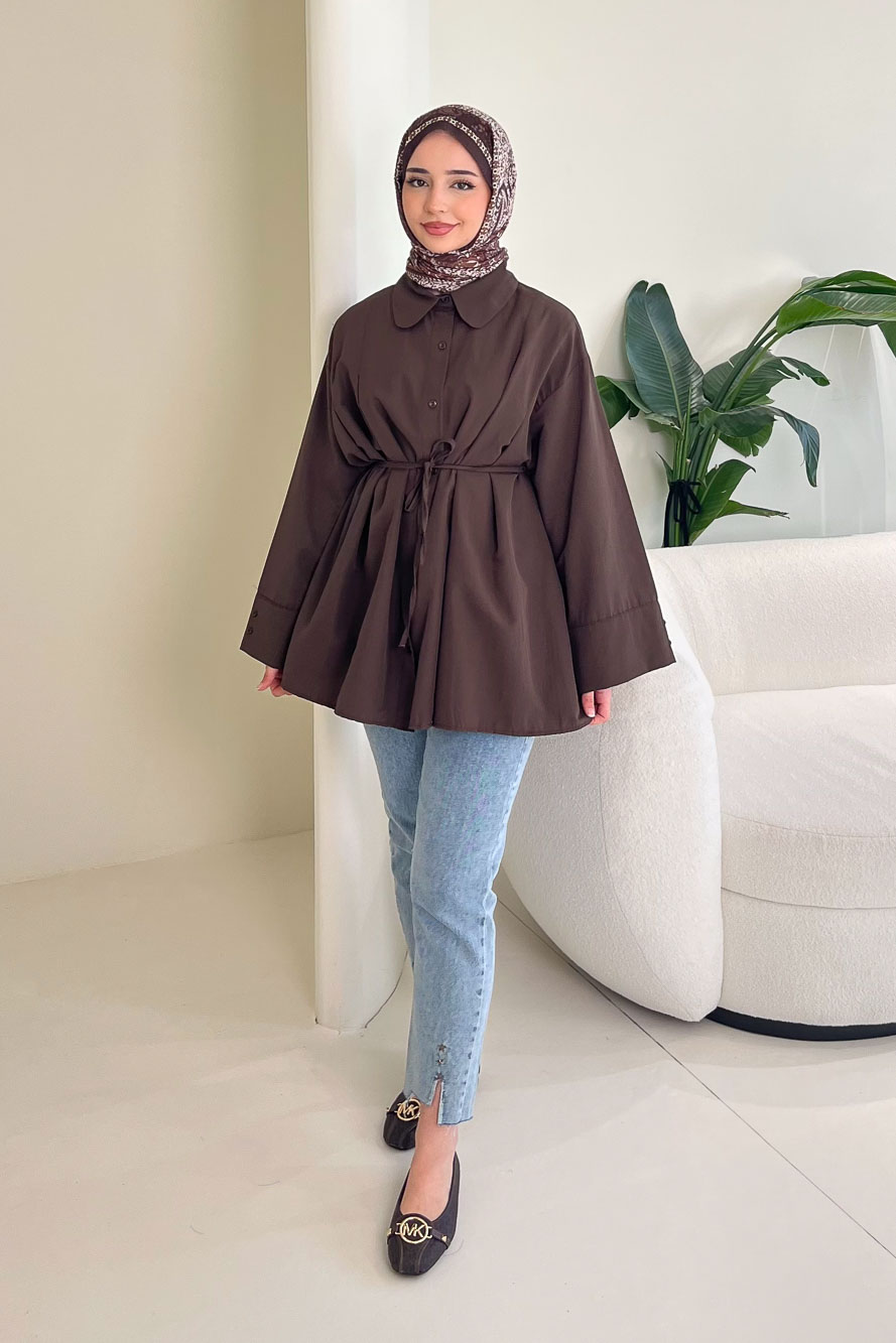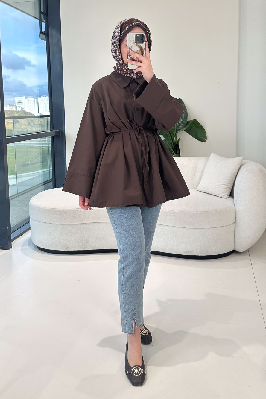 Ön kısmındaki pile detayları gömleğe hareketli ve sofistike bir görünüm kazandırır. Tam boy düğmeli tasarımı ile klasik bir duruş sağlarken, seyyar kemer detayı sayesinde isteğe göre bel vurgusu yapılabilir. Rahat kesimi ile farklı kombinlere kolayca uyum sağlar. Manken üzerinde 1 bedendir.