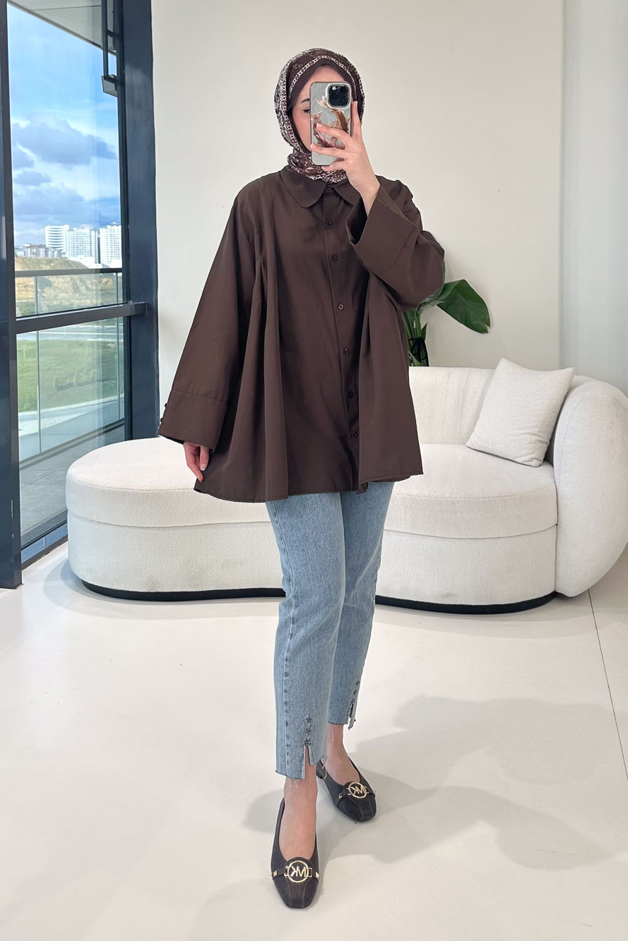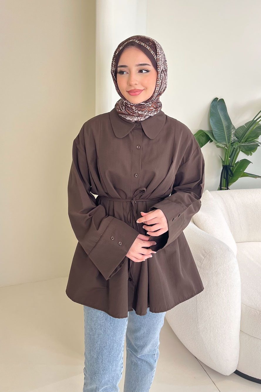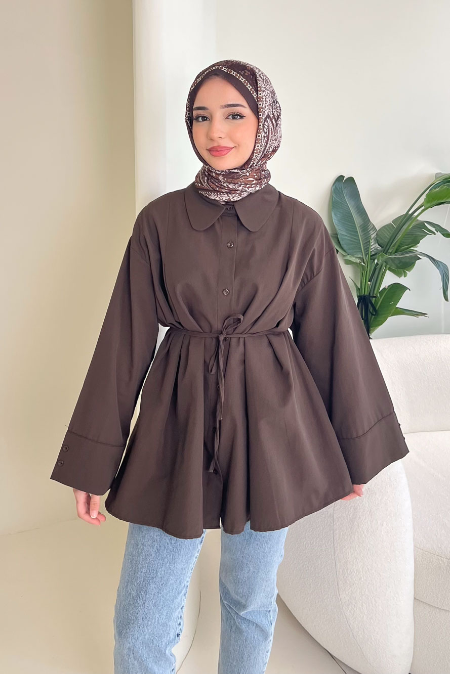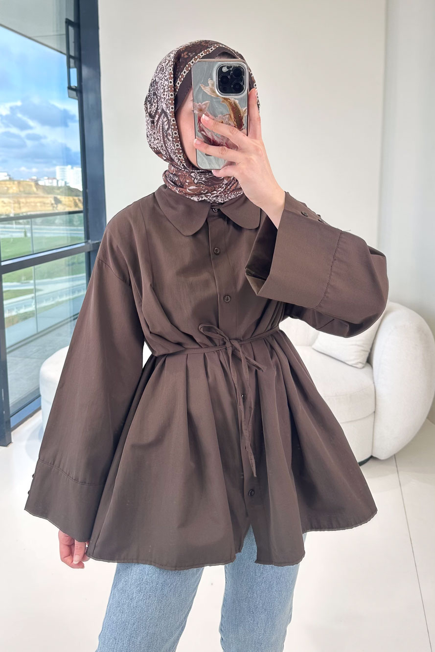 Ön kısmındaki pile detayları gömleğe hareketli ve sofistike bir görünüm kazandırır. Tam boy düğmeli tasarımı ile klasik bir duruş sağlarken, seyyar kemer detayı sayesinde isteğe göre bel vurgusu yapılabilir. Rahat kesimi ile farklı kombinlere kolayca uyum sağlar. Manken üzerinde 1 bedendir.