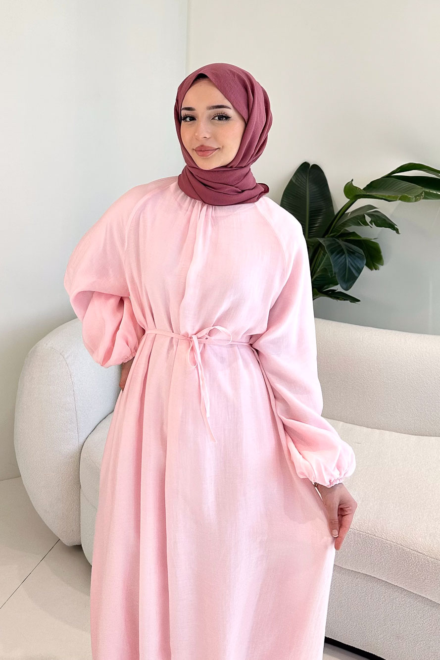 Jisoo Tünel Detaylı Oversize Gömlek Elbise - Pudra