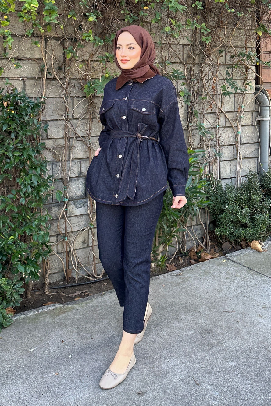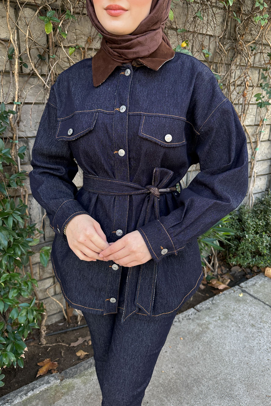Cep Detaylı Beli Kemerli Trençkot - Lacivert