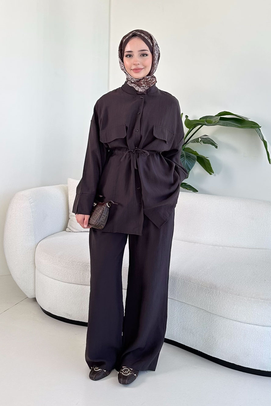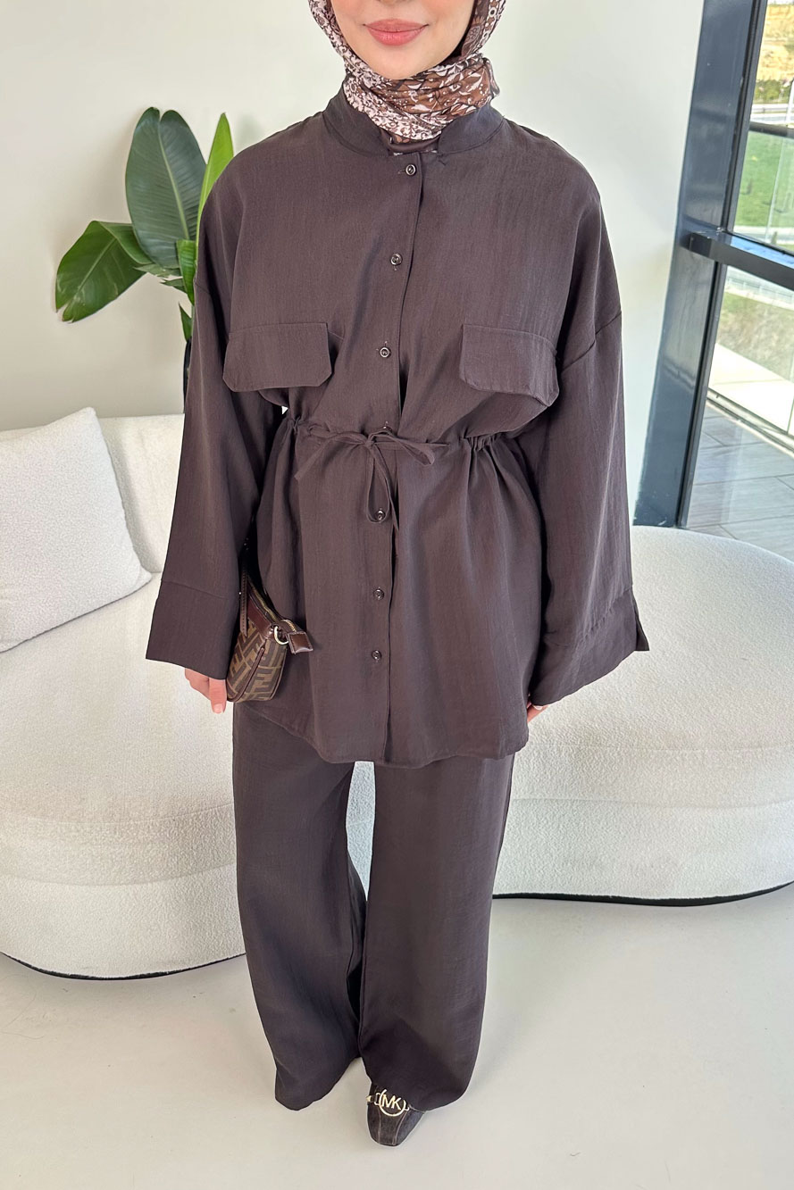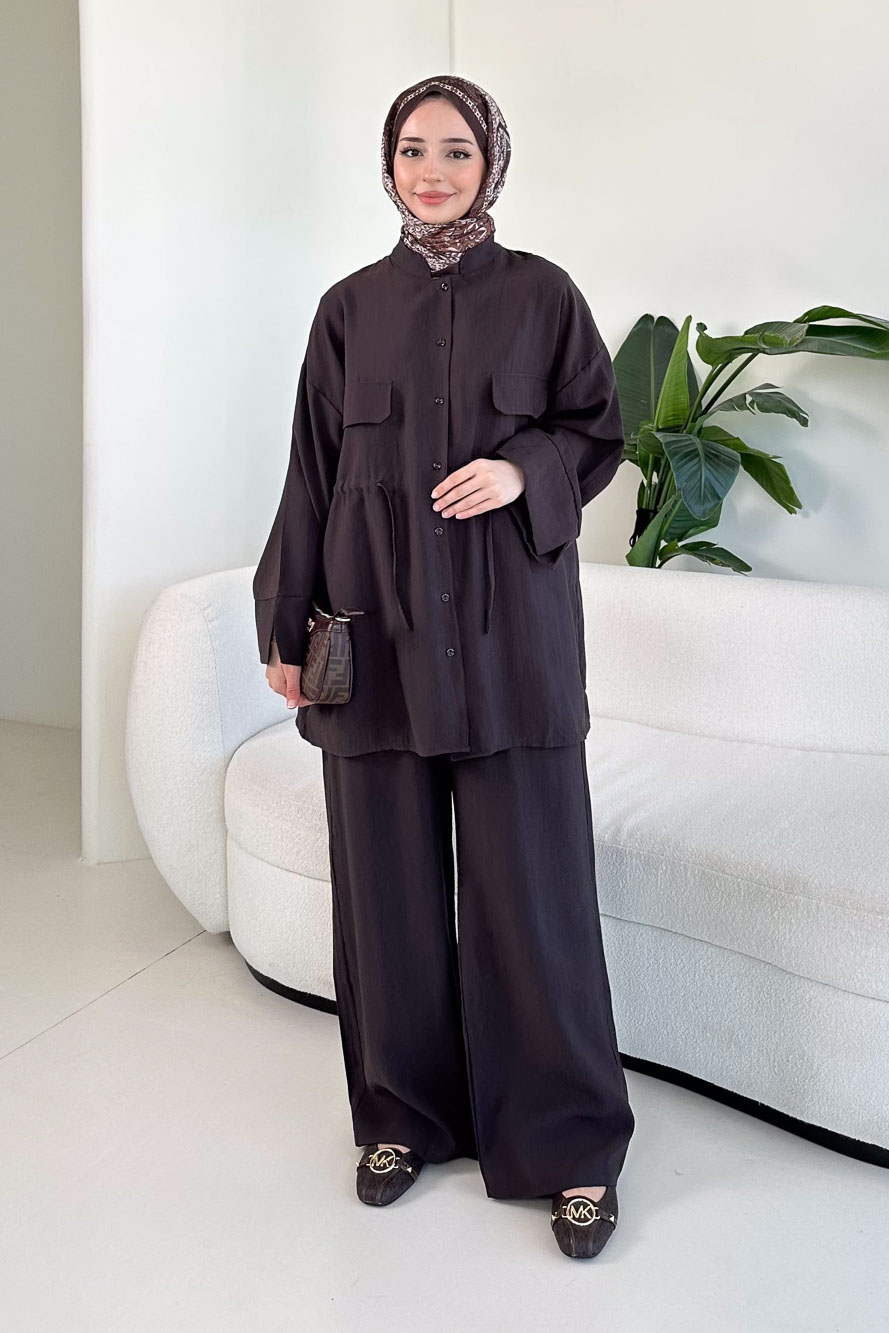 Günlük şıklığı konforla buluşturan modern tasarımıyla öne çıkar. Tencel ağırlıklı kumaşı sayesinde hafif, nefes alabilen ve yumuşak dokusuyla gün boyu rahat bir kullanım sunar.