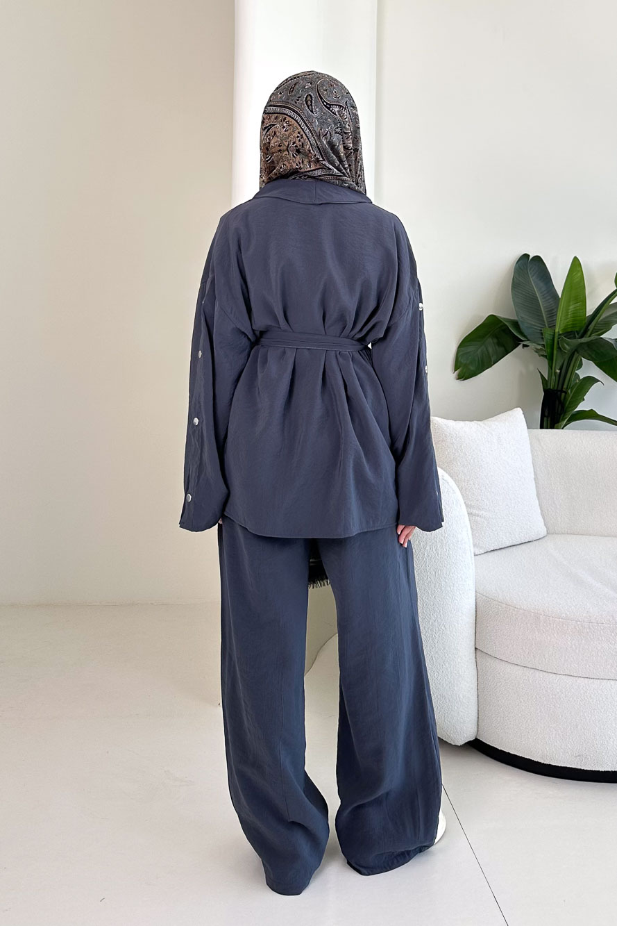 Çıtçıt Detaylı Kemerli Pantolon Takım - Antrasit