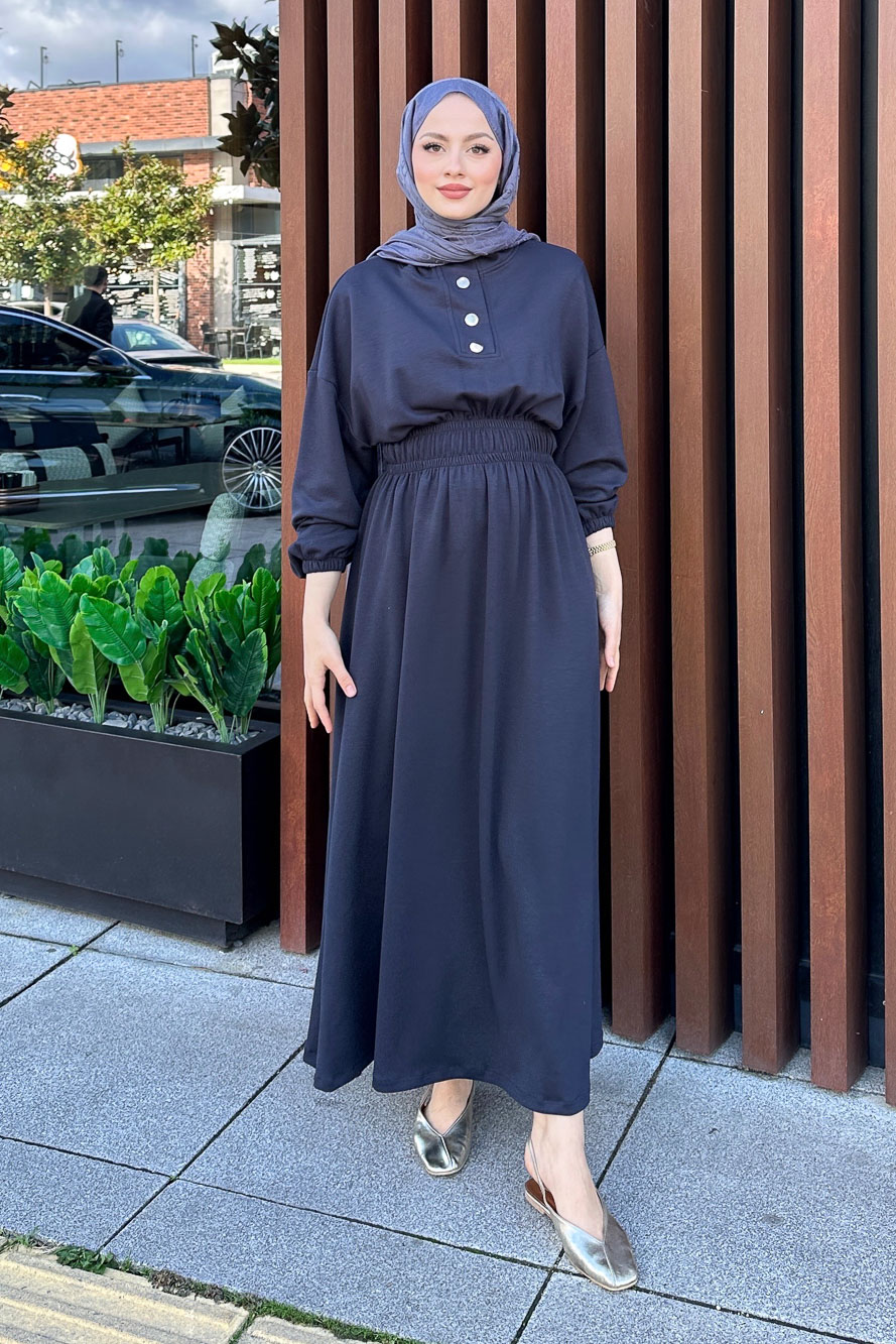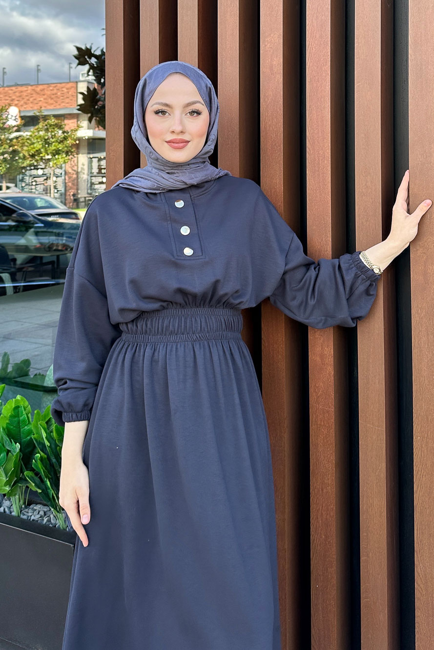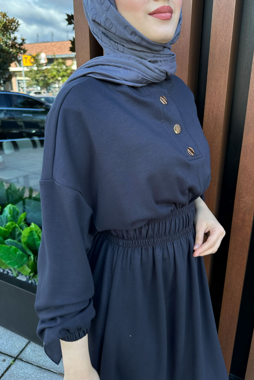 Boydan Düğmeli Elbise - Haki