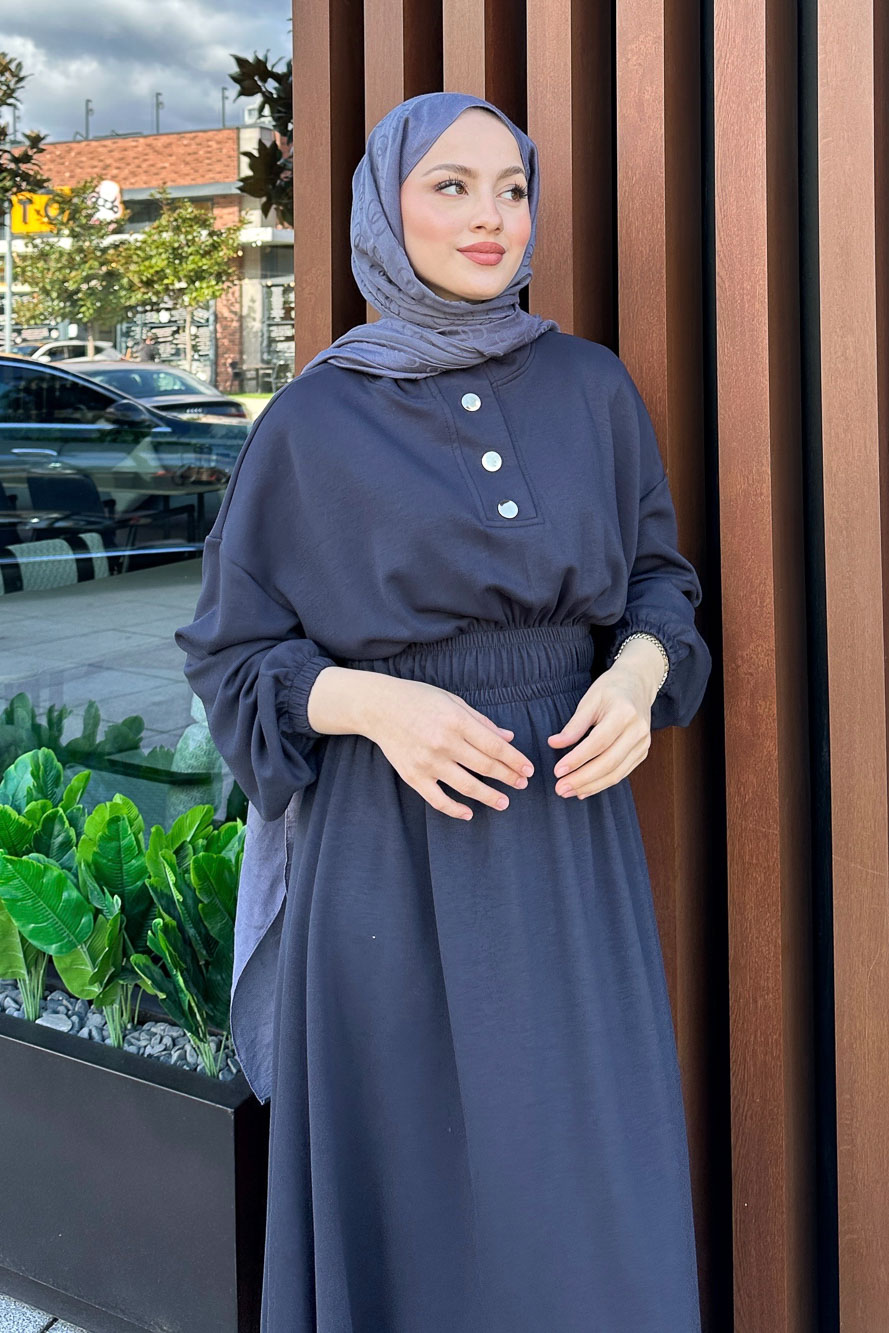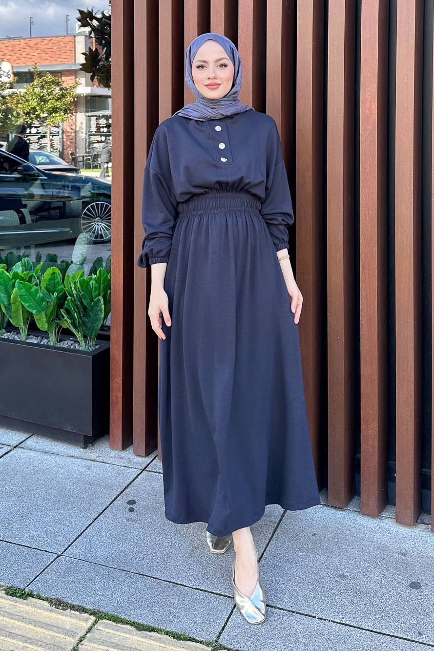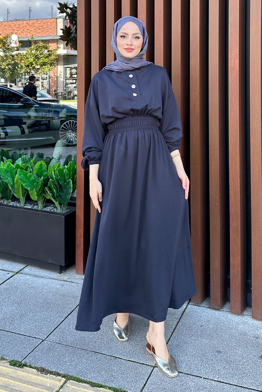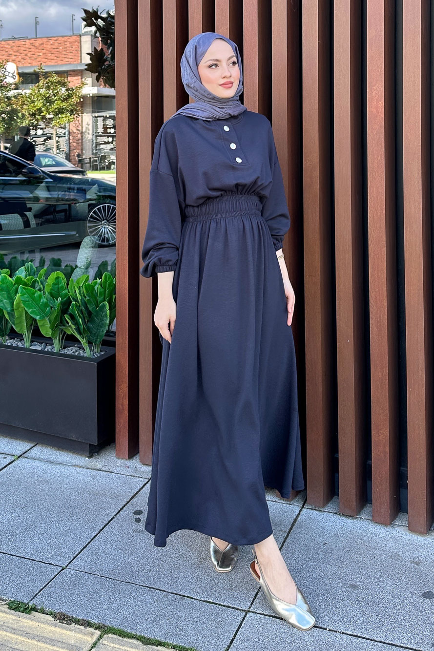 Boydan Düğmeli Elbise - Haki