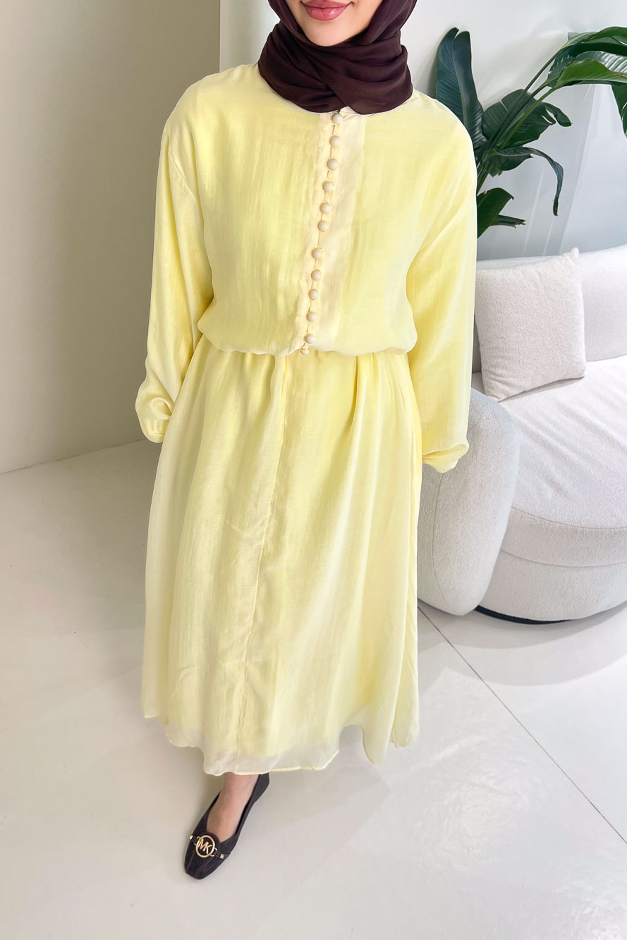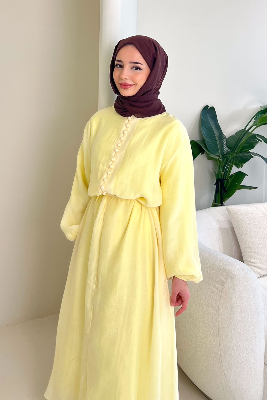 Diana Astarlı Düğmeli Elbise - Sarı