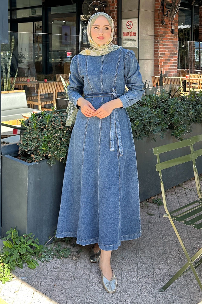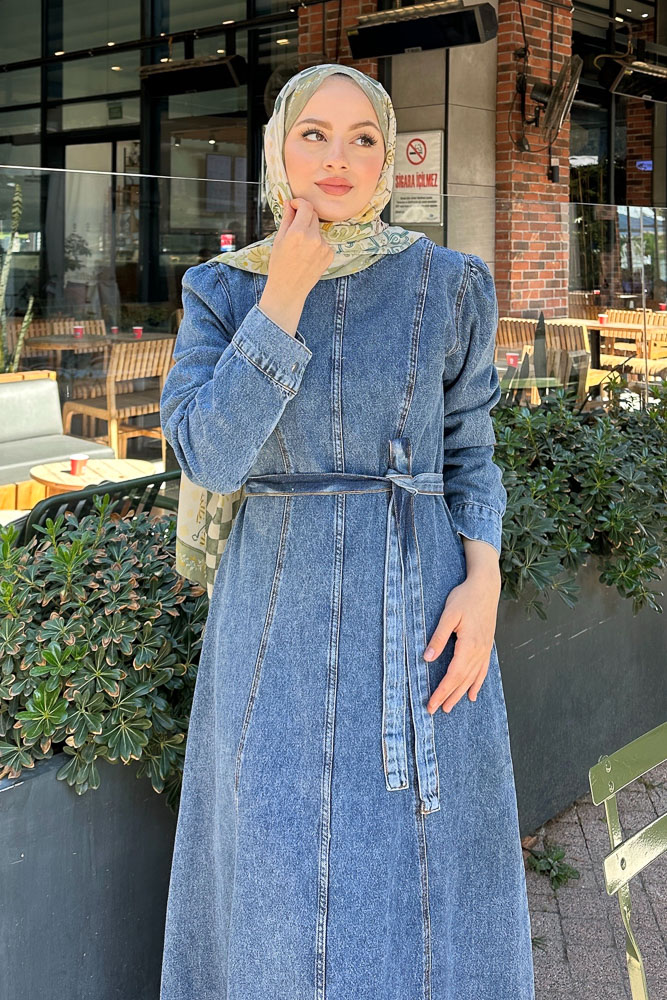 Kumaş: Denim Kalıp: Regular Uzunluk: 135 cm S Beden Gögüs Ölçüsü: 90 cm Seyyar Kemeri vardır.