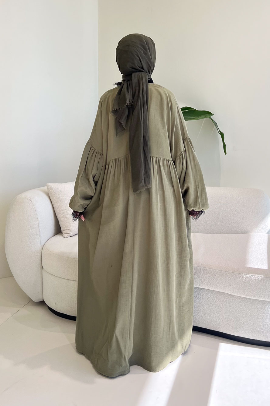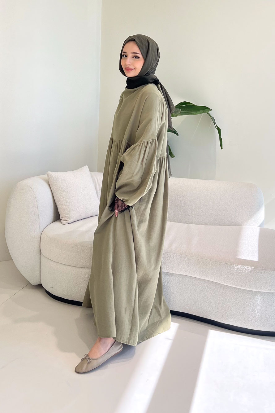 Elaria Dantel Detaylı Müslin Elbise - Haki