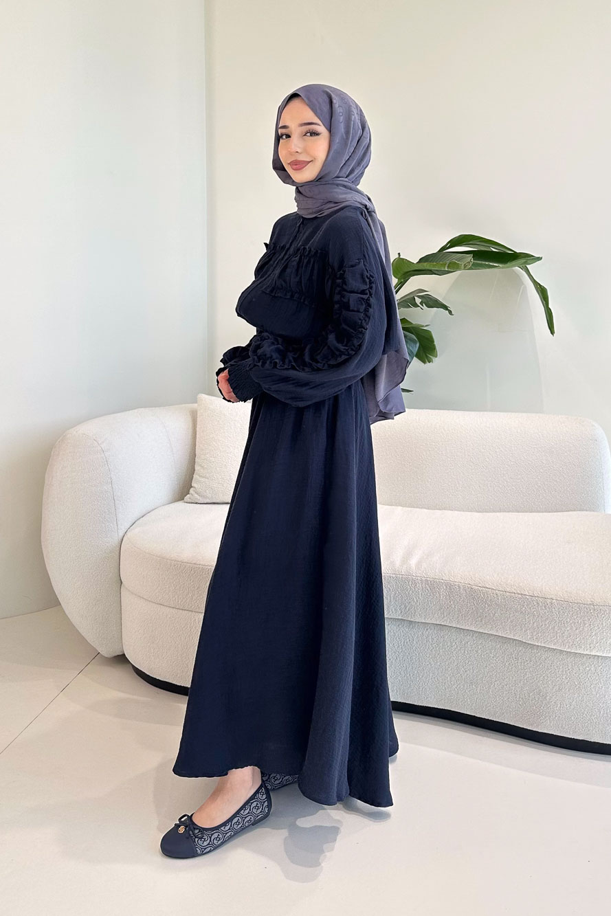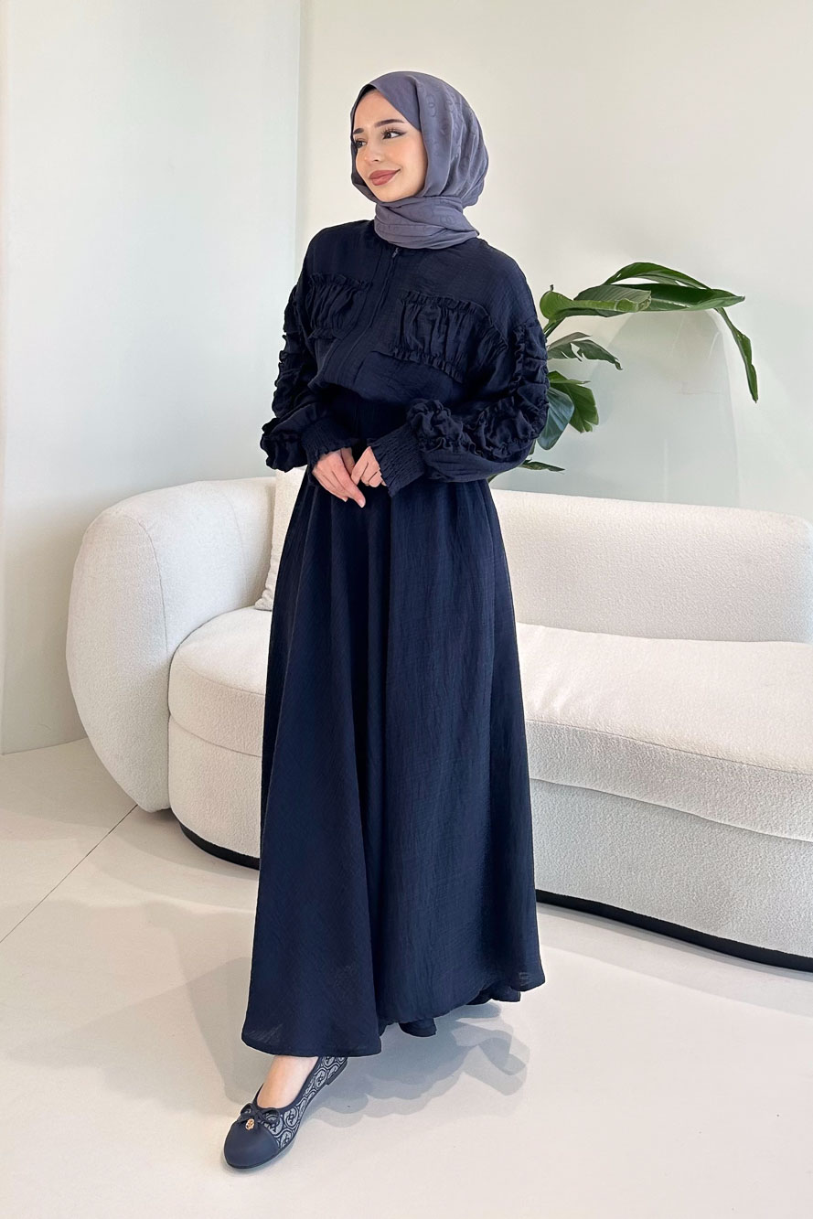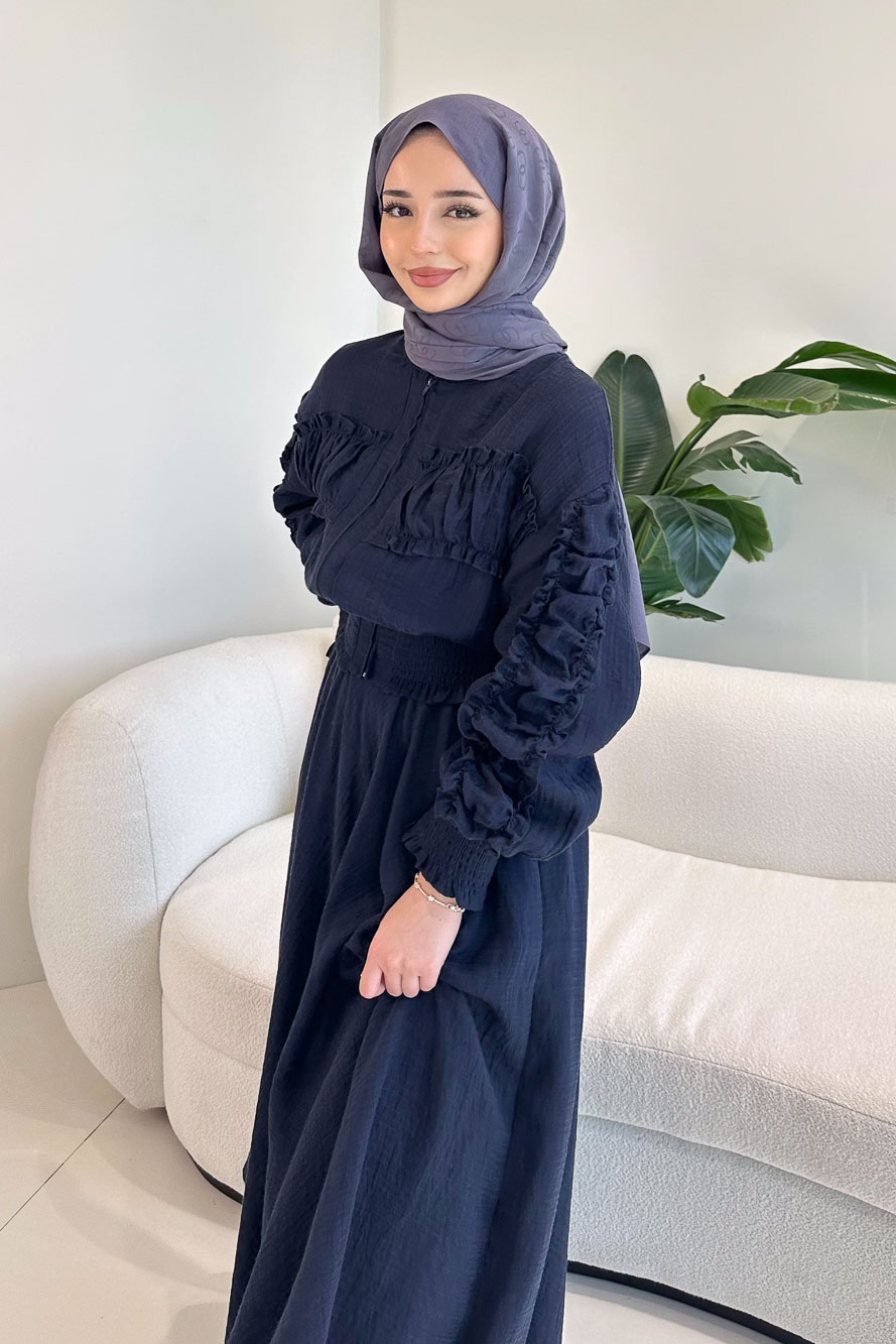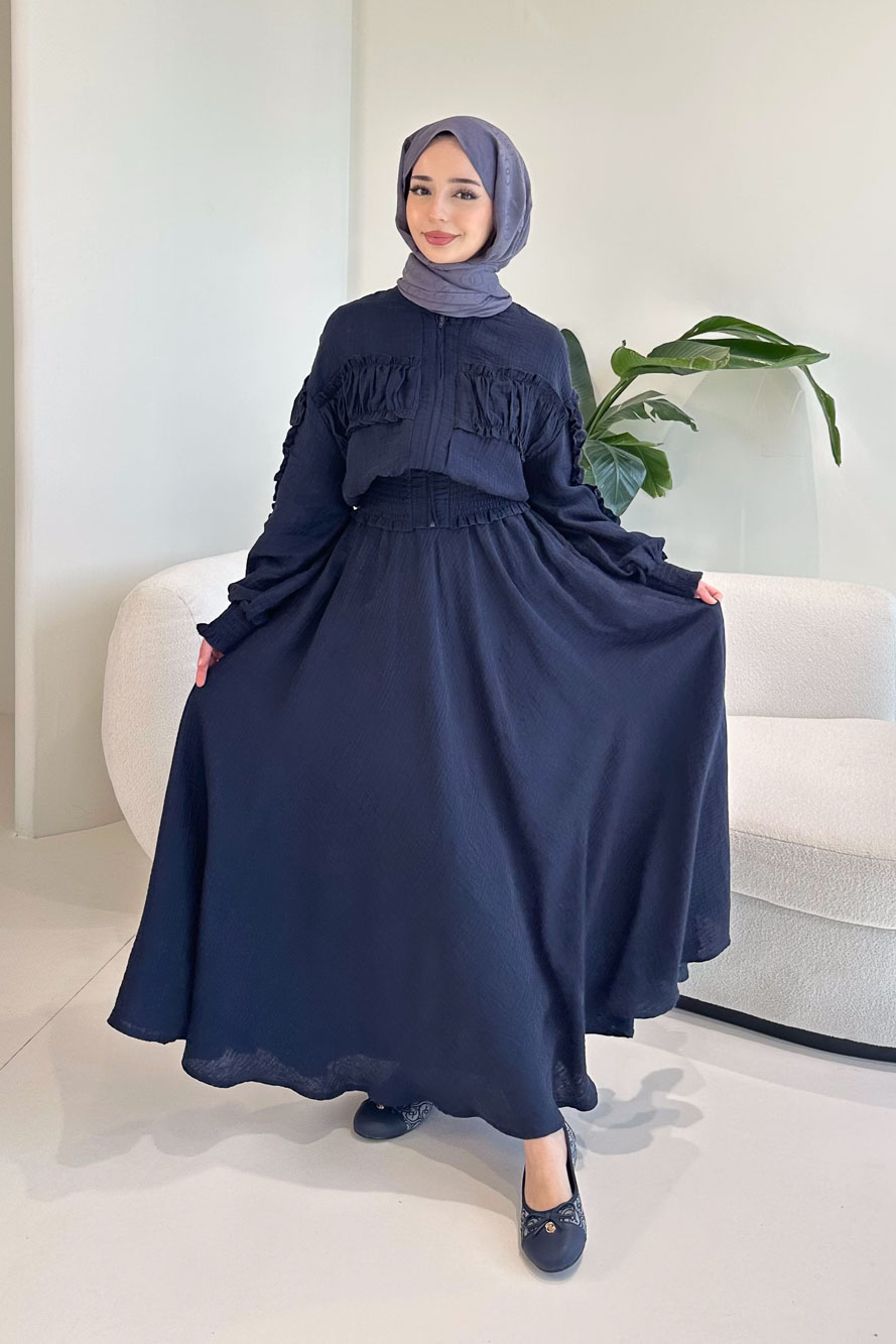 Fermuarlı Büzgü Detaylı Müslin Etek Takım - Lacivert