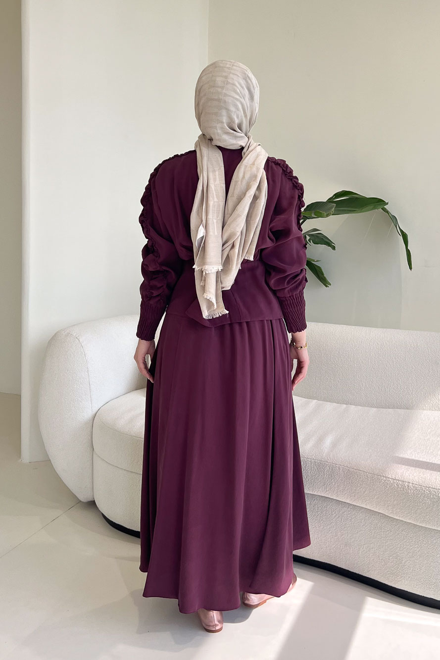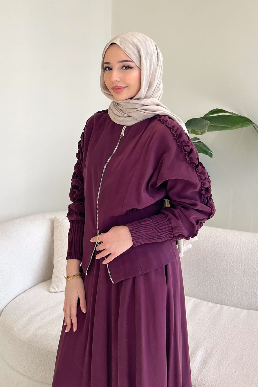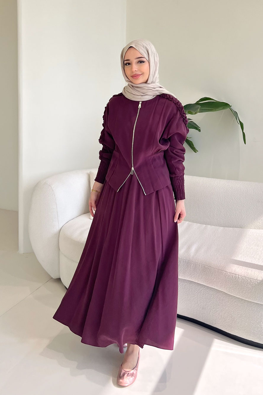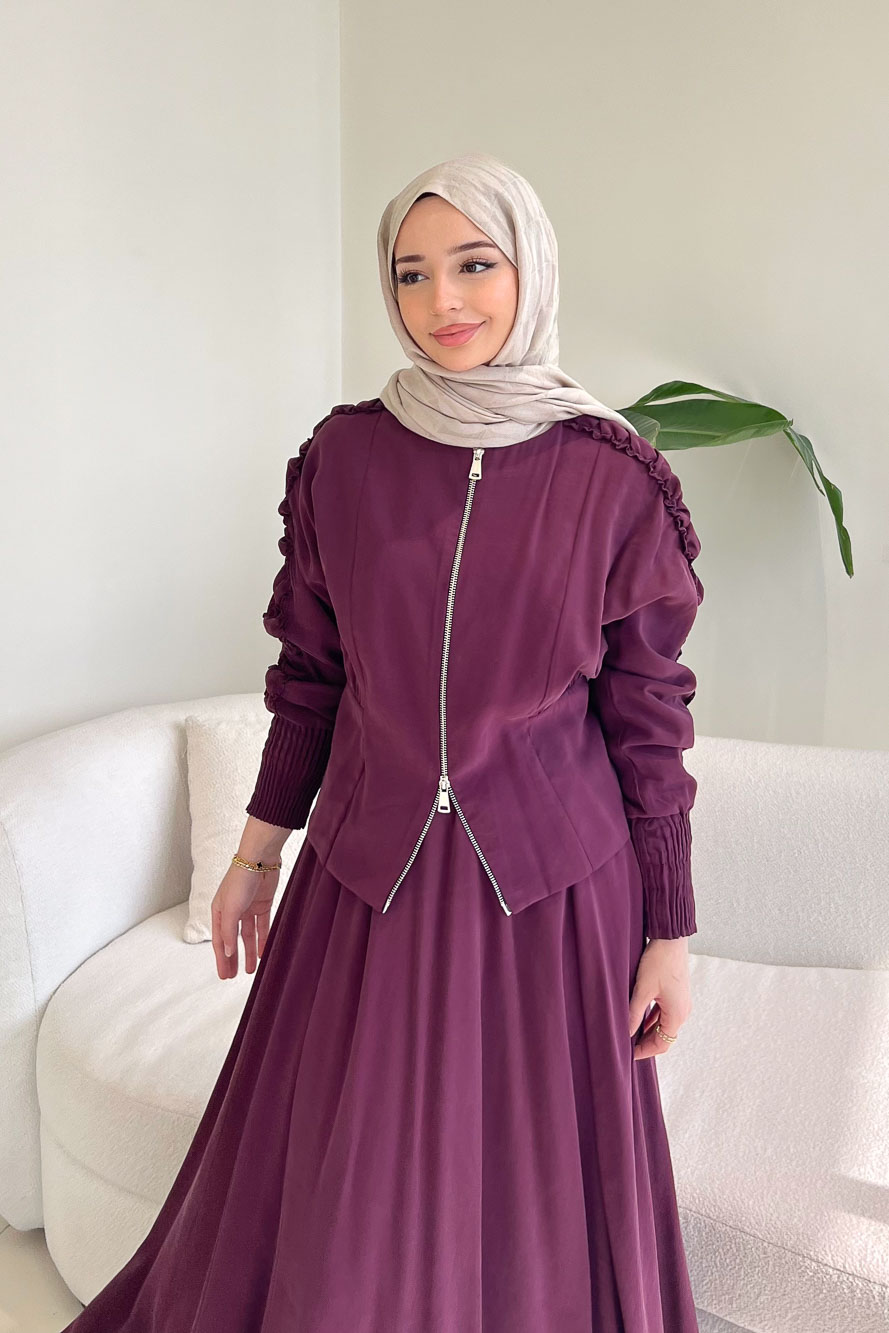 Fermuarlı Büzgü Kol Etekli Takım - Bordo