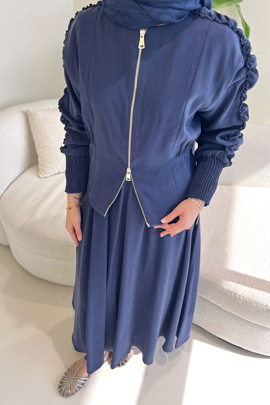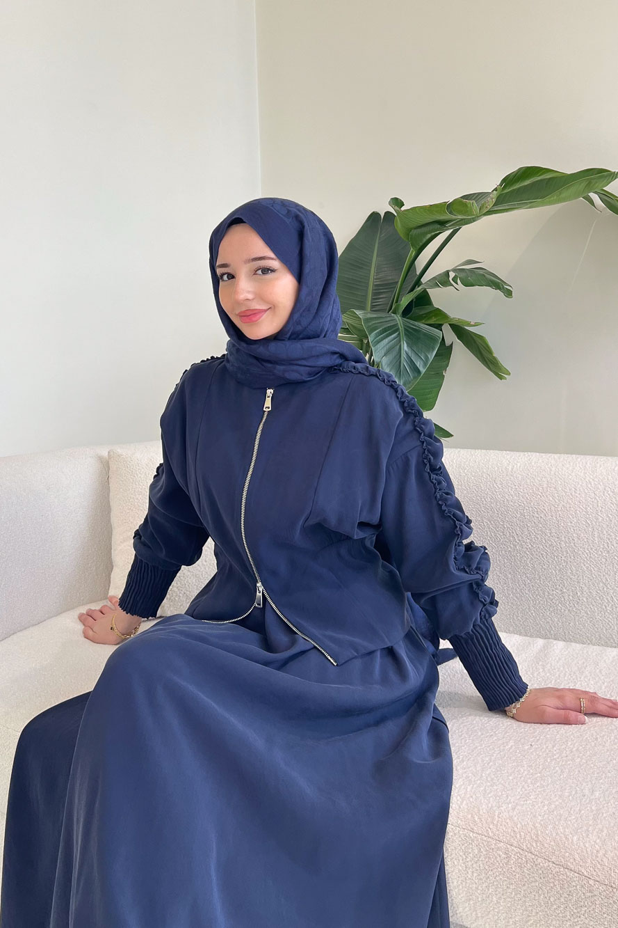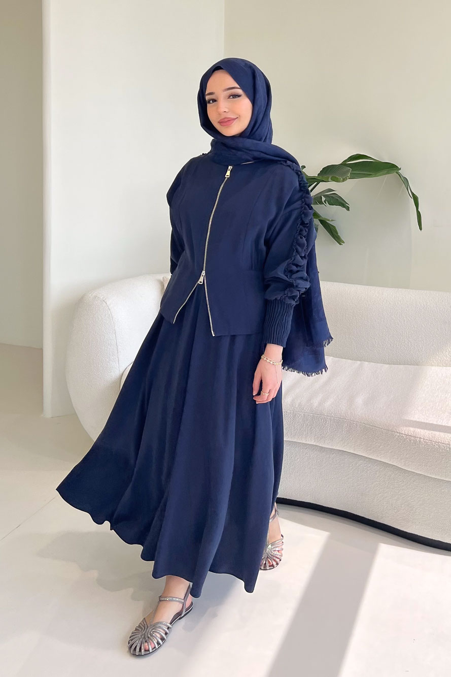 Fermuarlı Büzgü Kol Etekli Takım - Lacivert