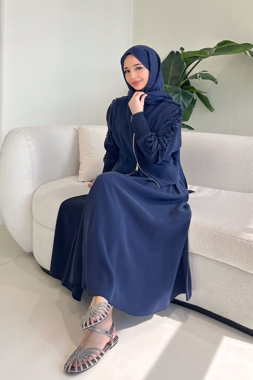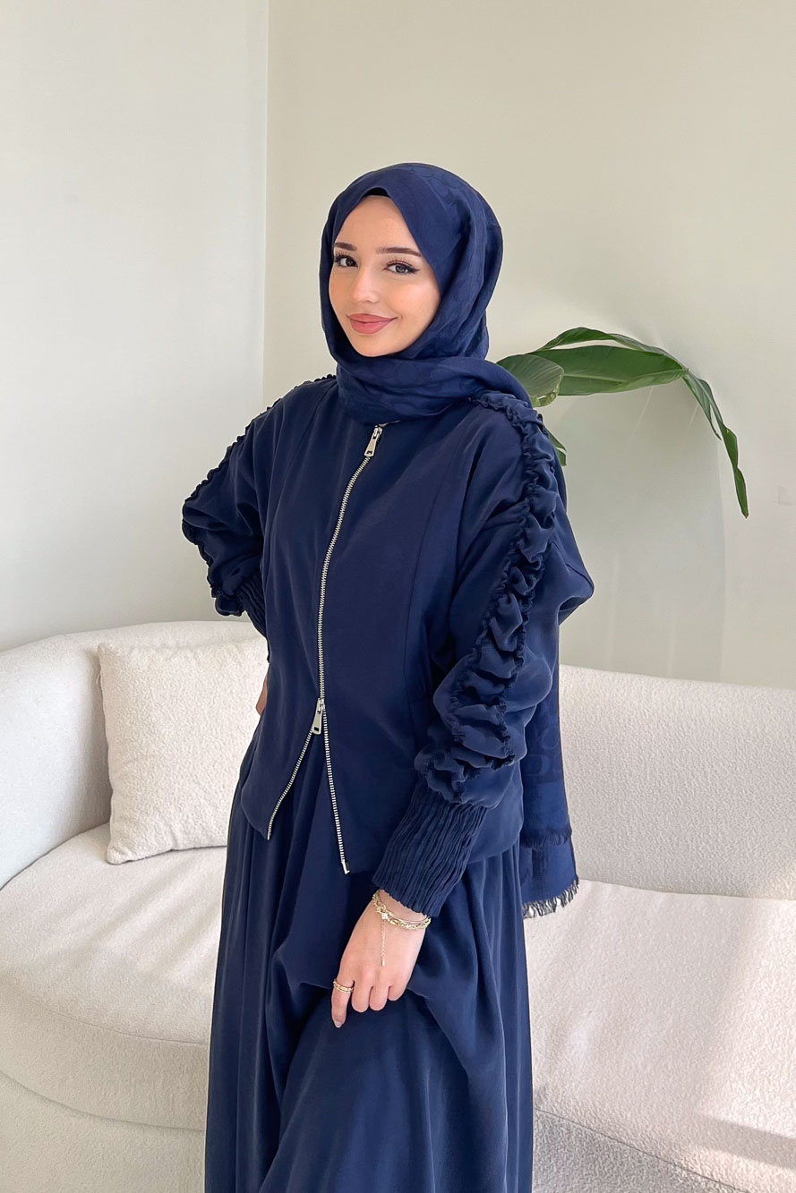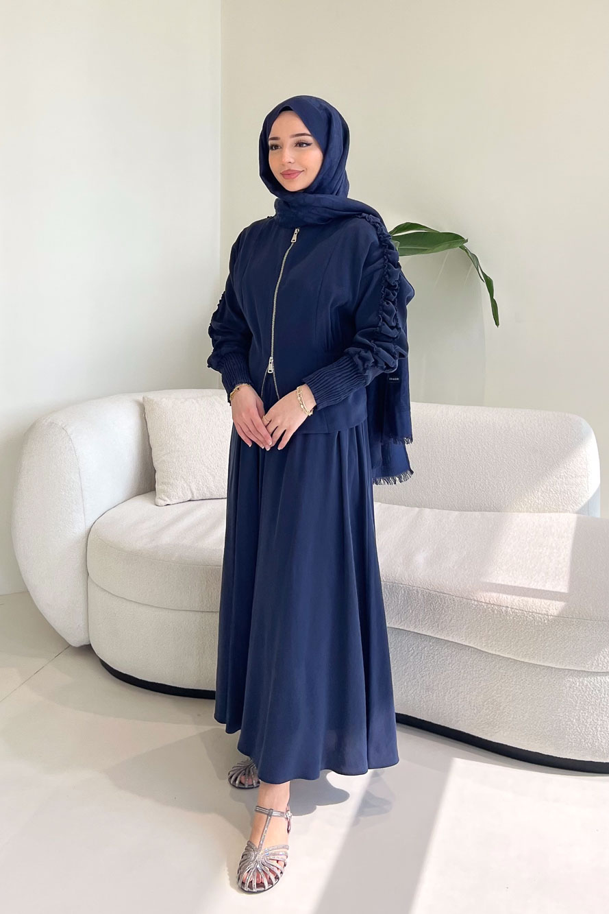 Fermuarlı Büzgü Kol Etekli Takım - Lacivert