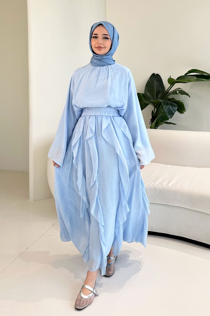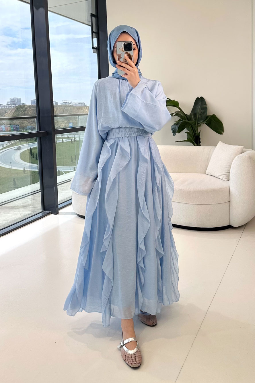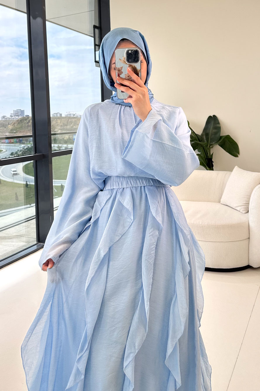 Fırfır Detaylı Tül Etek Takım - Mavi