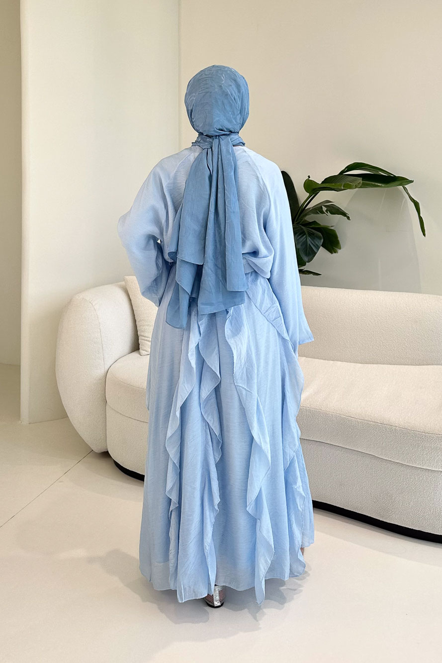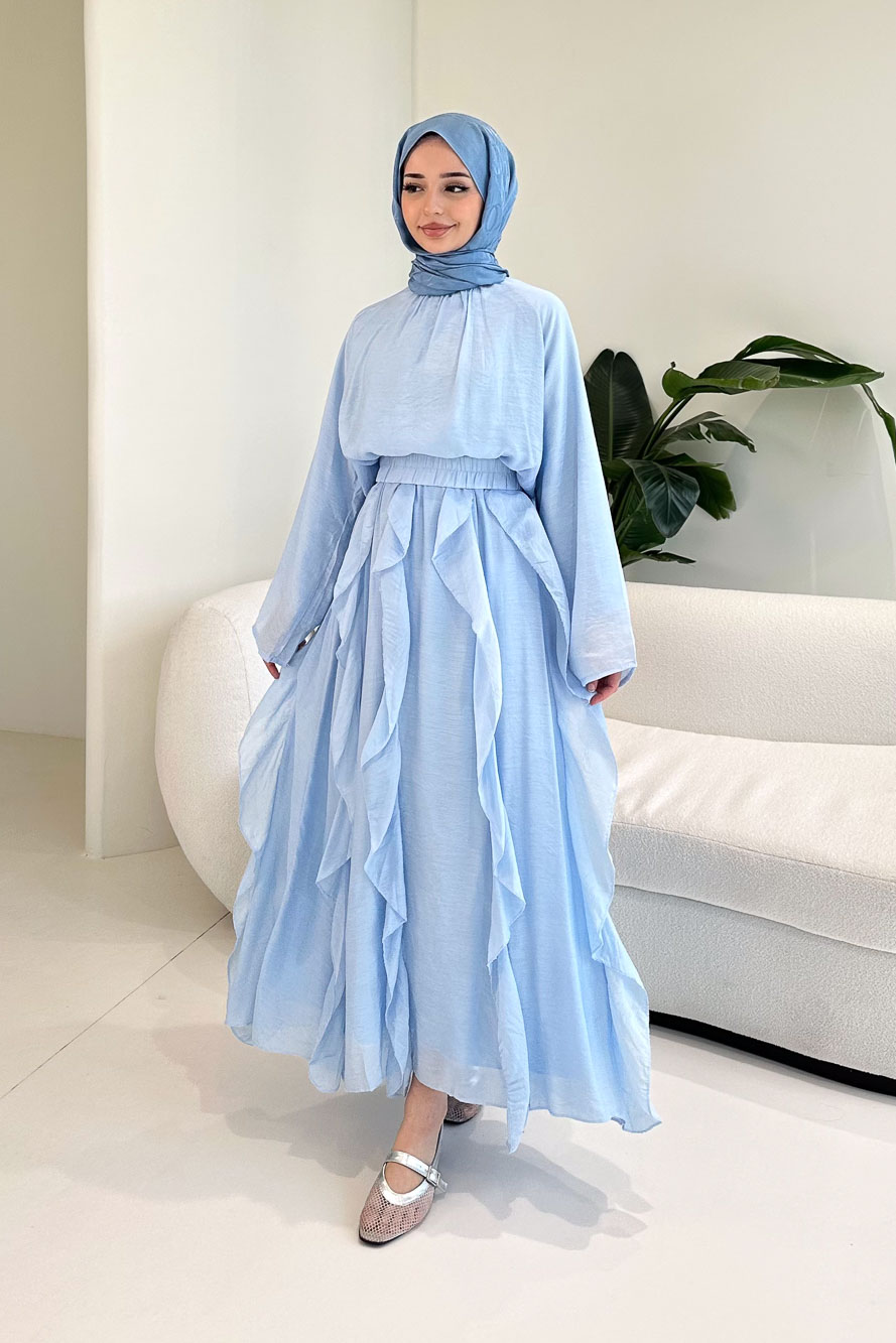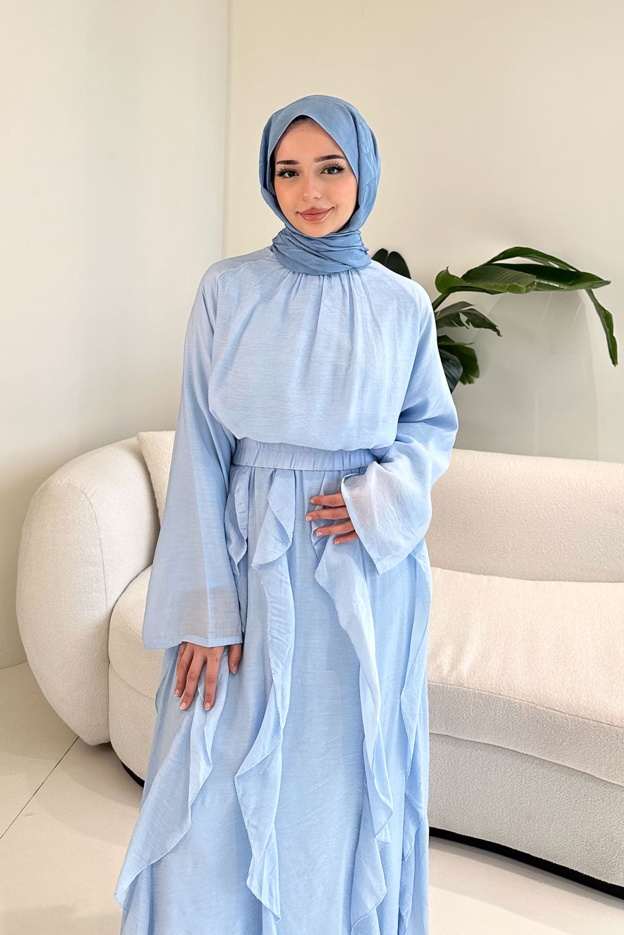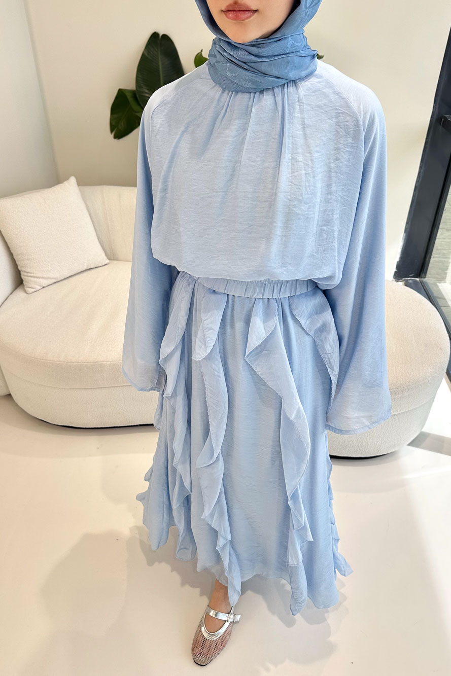 Fırfır Detaylı Tül Etek Takım - Mavi