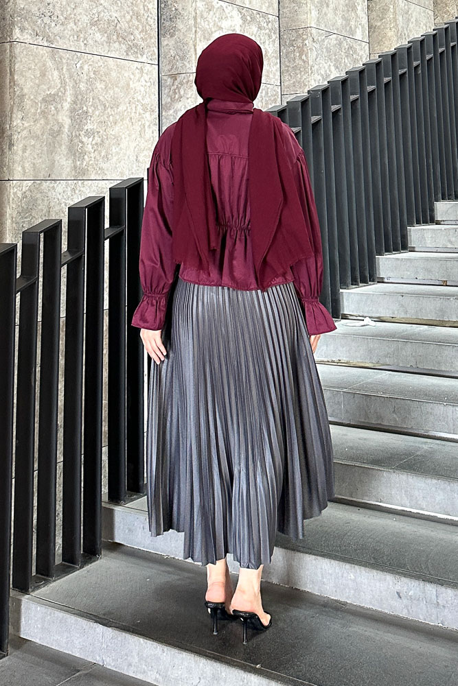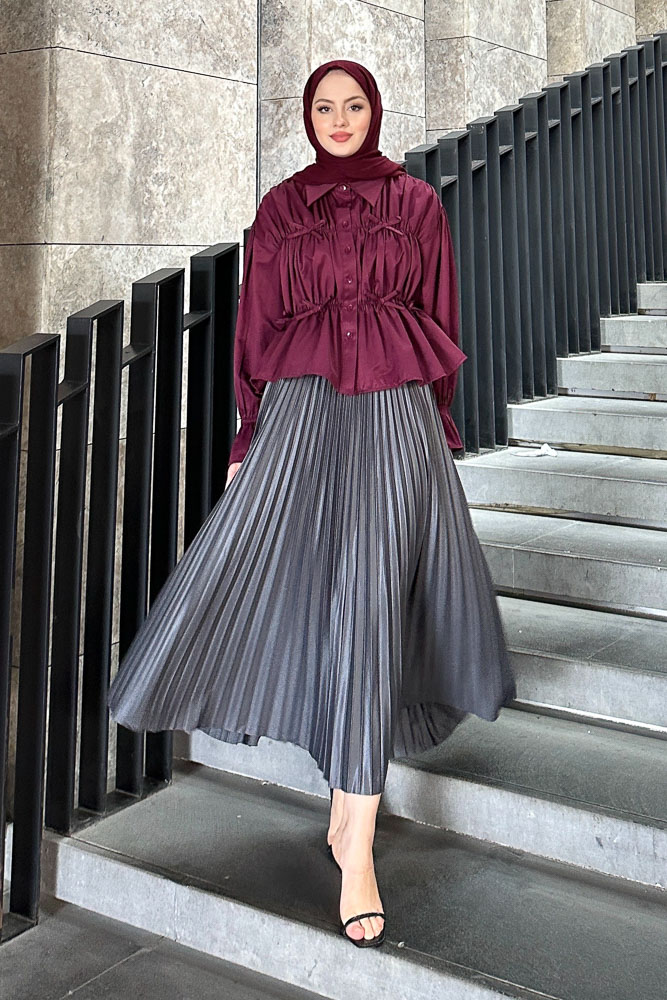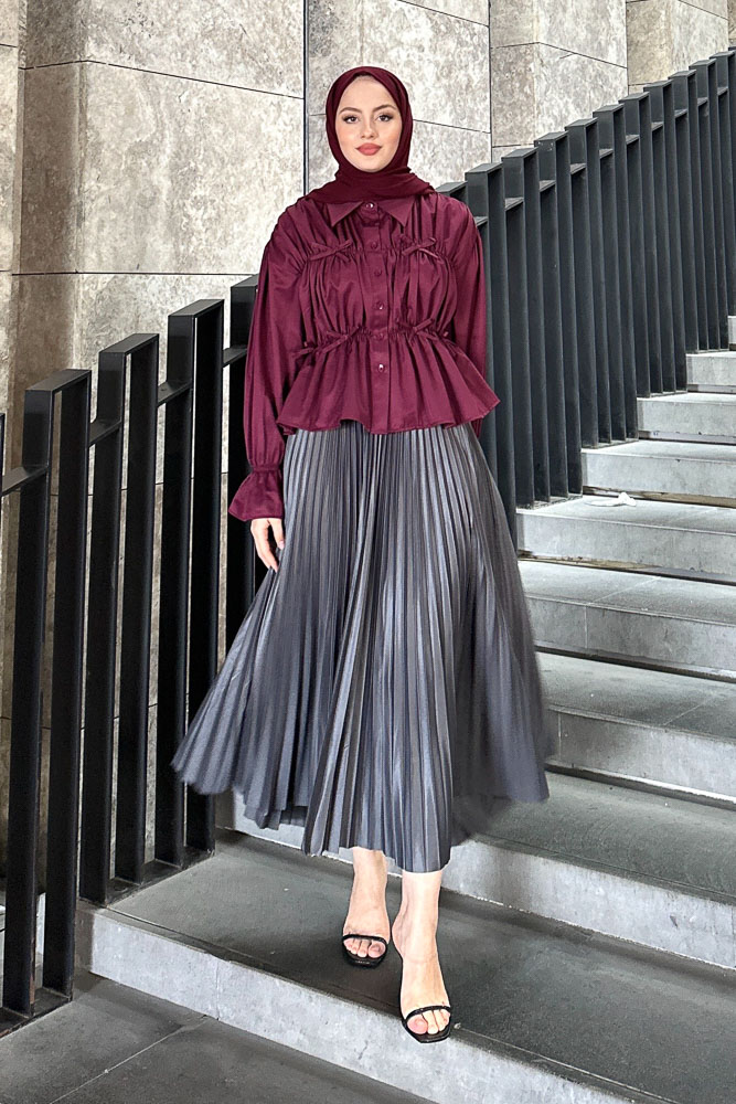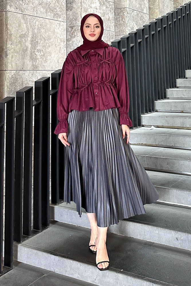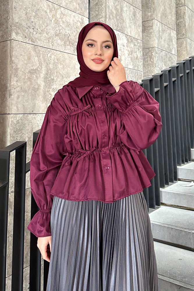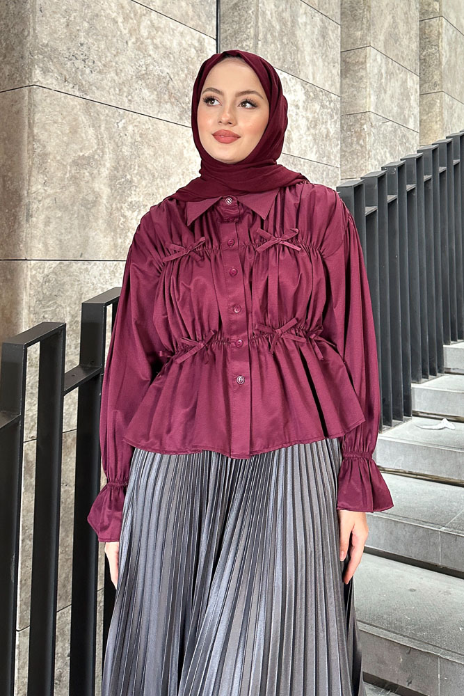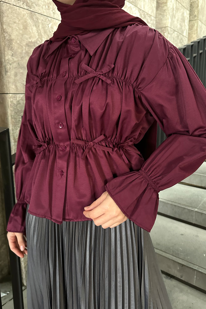 Fiyonklu Büzgülü Gömlek - Burgonya
