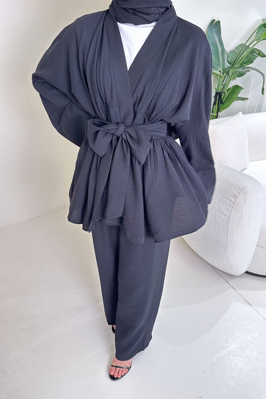 Geniş Kol Bağlama Detaylı Pantolon Takım