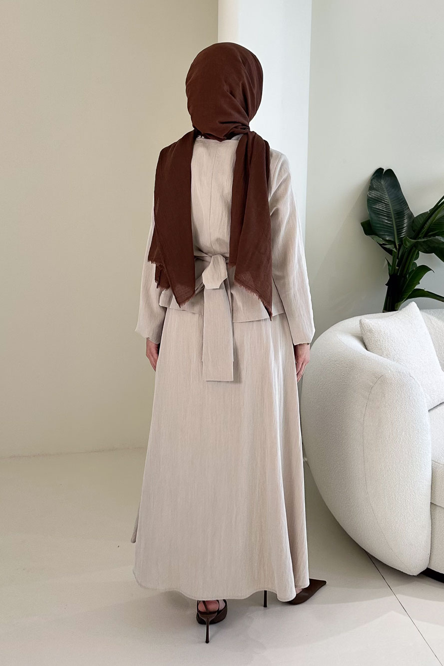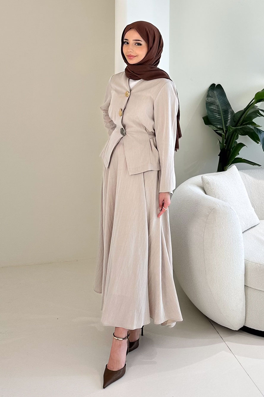 Lumi Gizli Fermuarlı Etekli Takım - Kahverengi