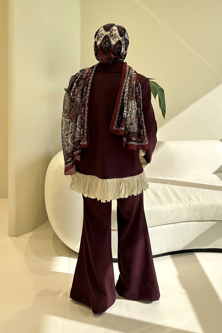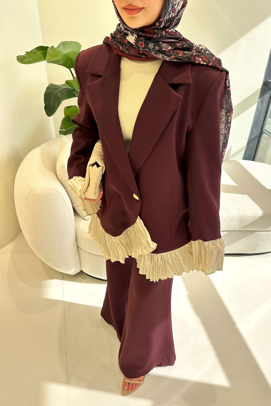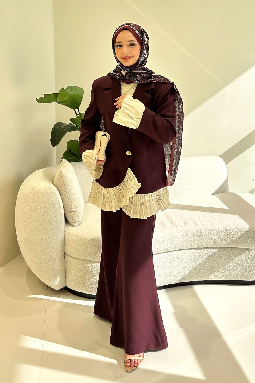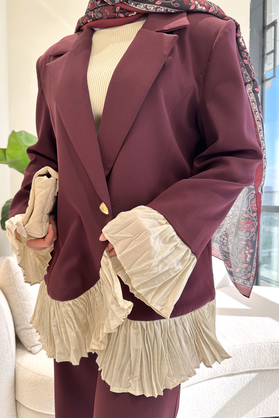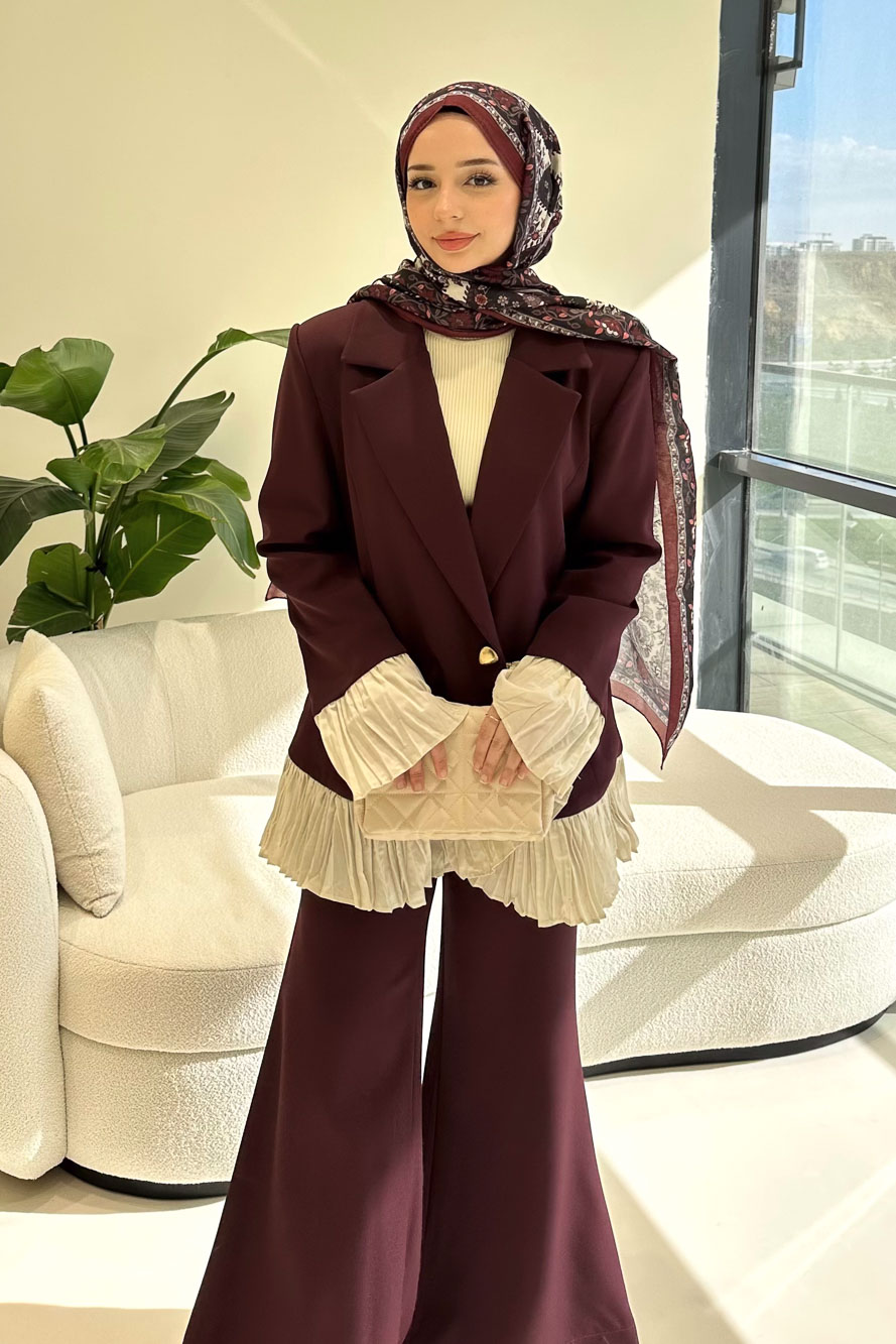 Hürrema Plise Garnili Takım - Mürdüm