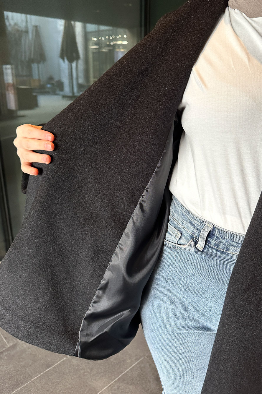 Narin Tam Boy Kaşe Kaban - Siyah