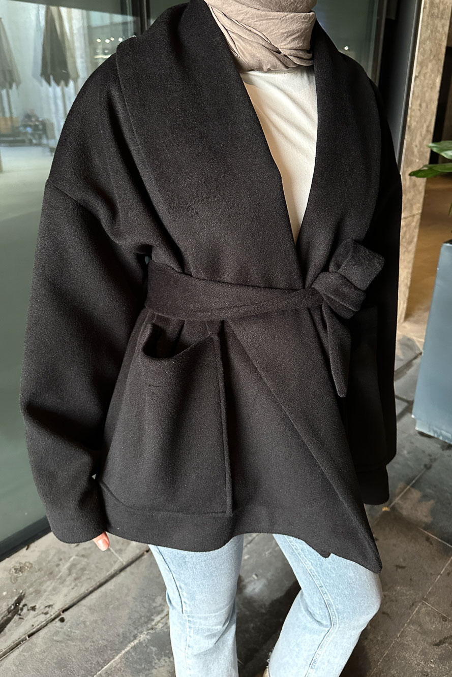 Iconic Kaşe Kısa Kaban - Siyah