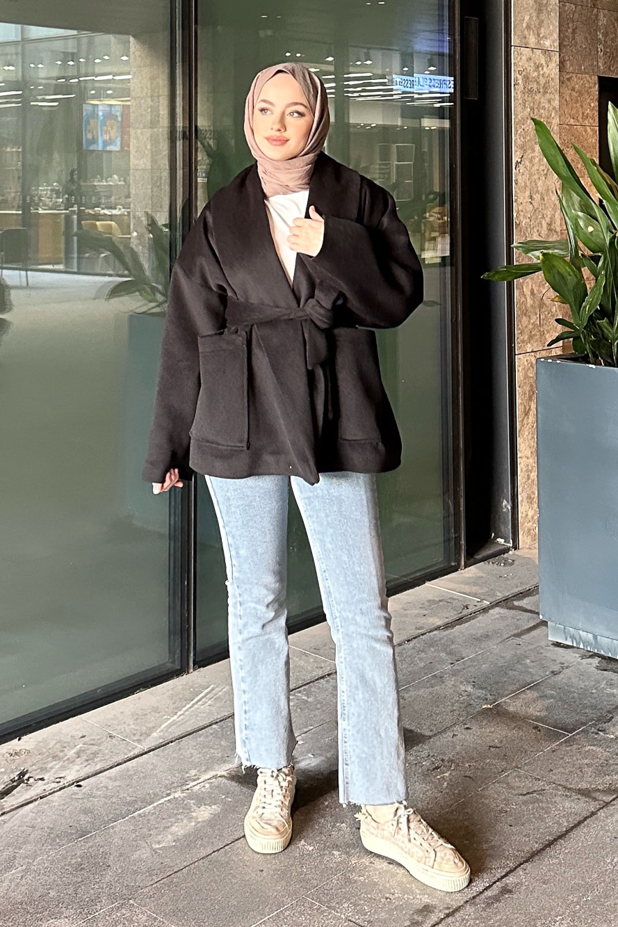 Balon Kol Kaşe Kaban - Çikolata