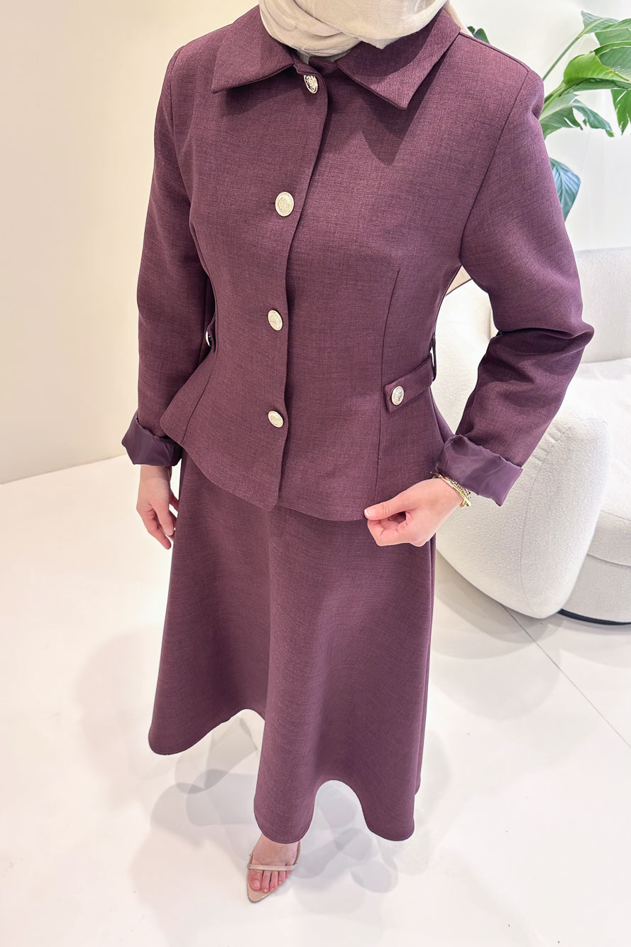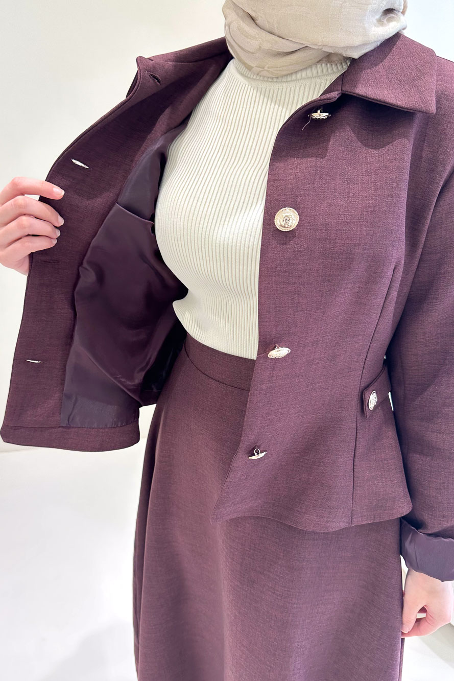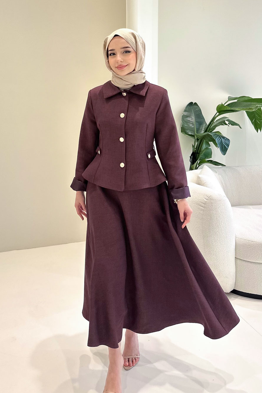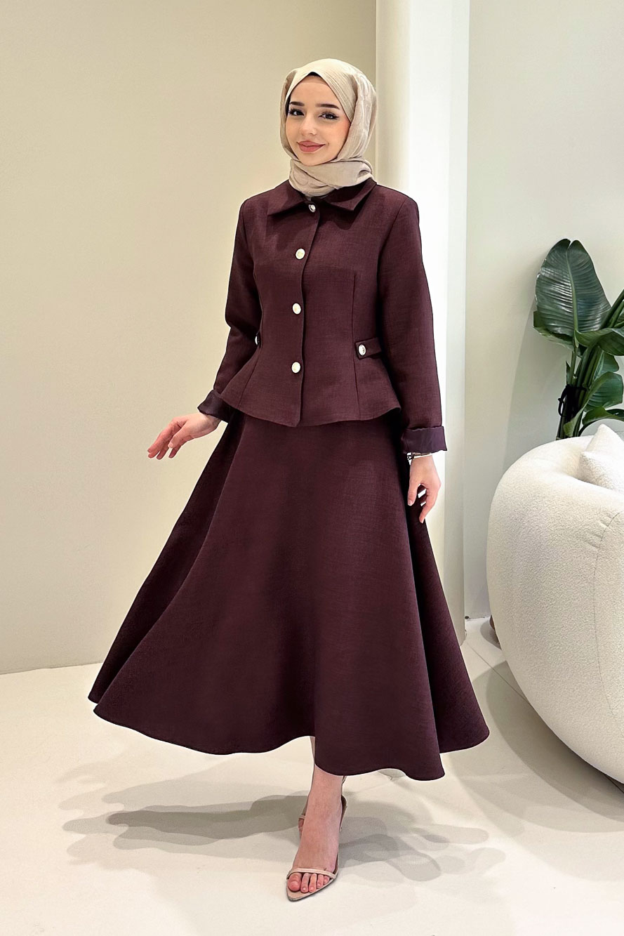Kaira Gold Düğmeli Etekli Takım
