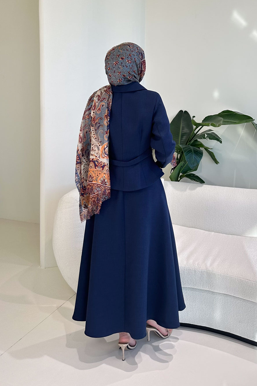 Ceketi astarlıdır ve tam düğmelidir. Çıkabilen kemer detayı bulunmaktadır. Etek beli yarım lastiklidir. Manken üzerinde S bedendir.