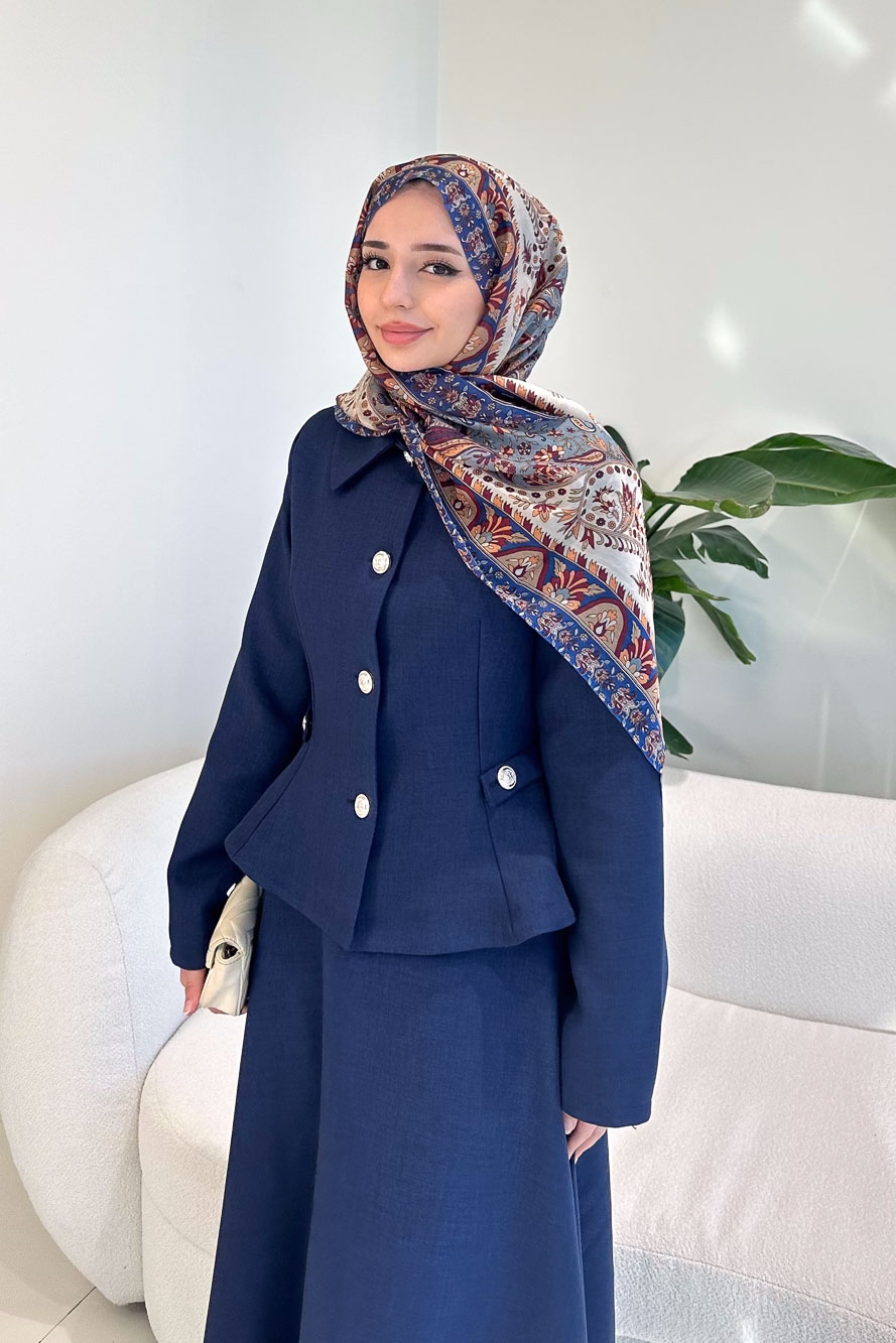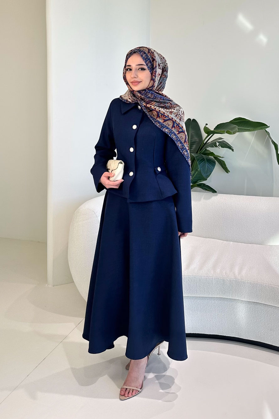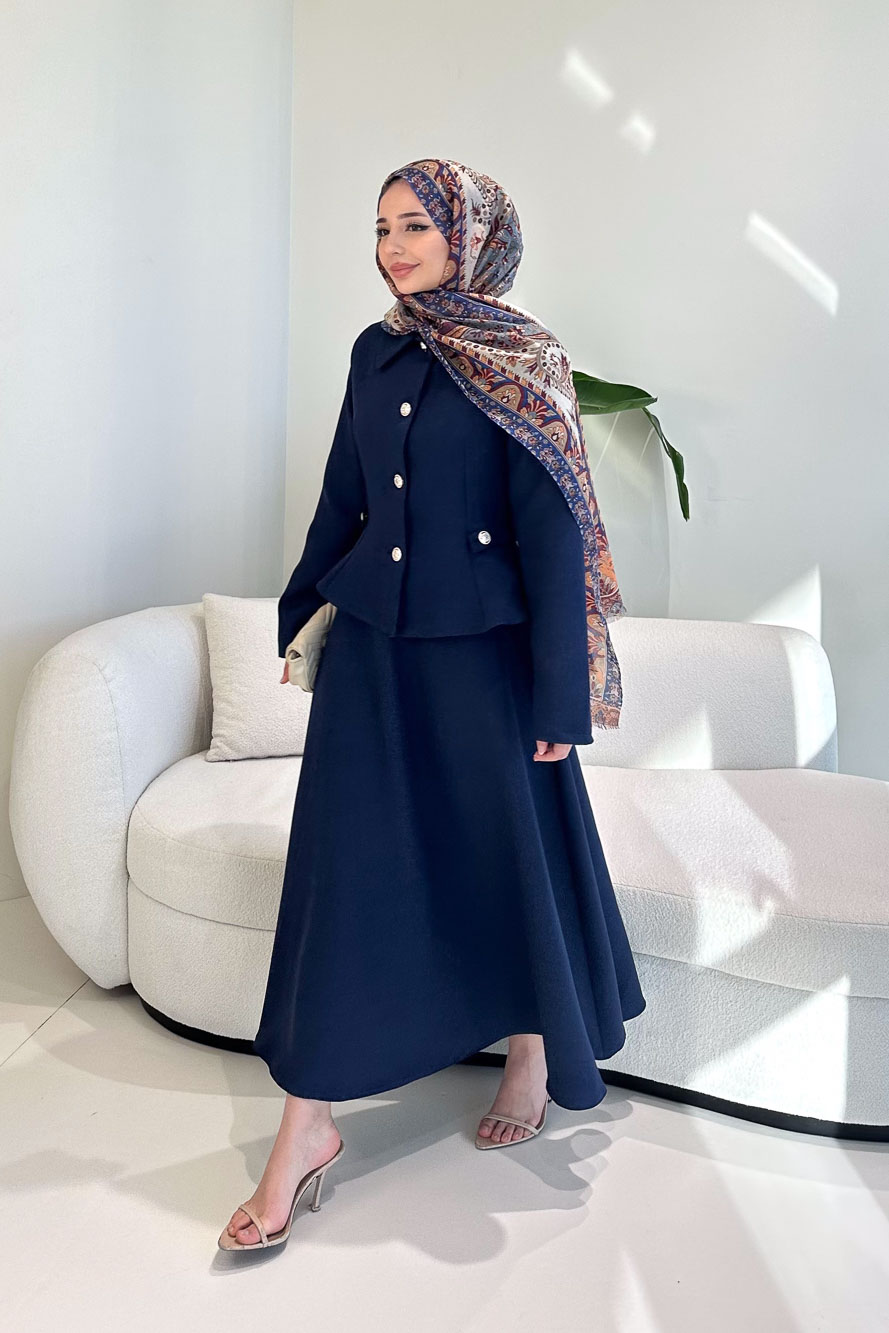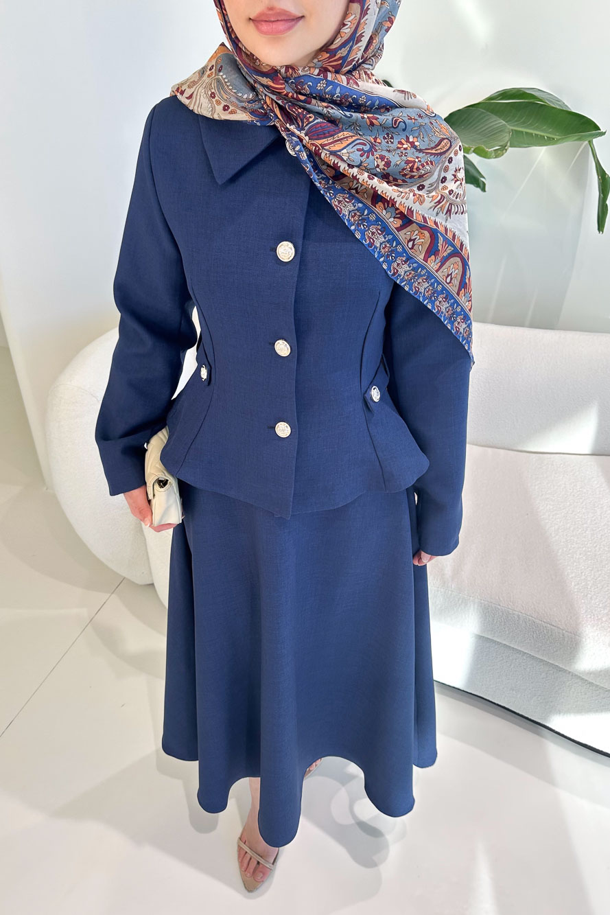 Kaira Gold Düğmeli Etekli Takım