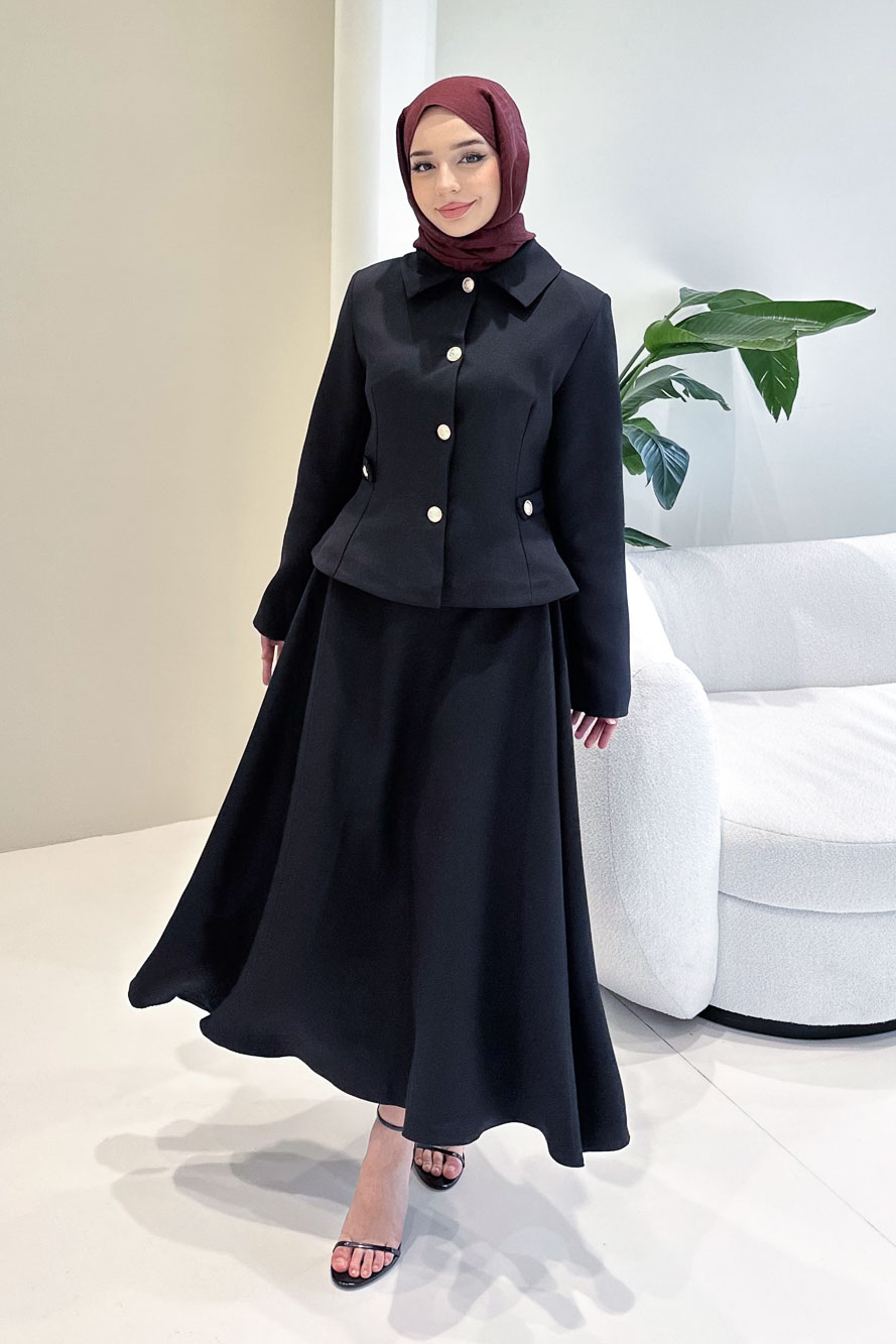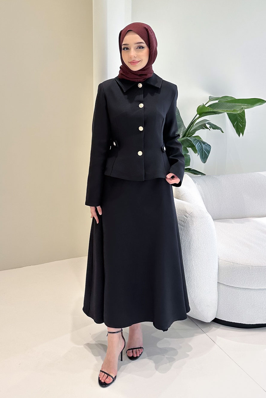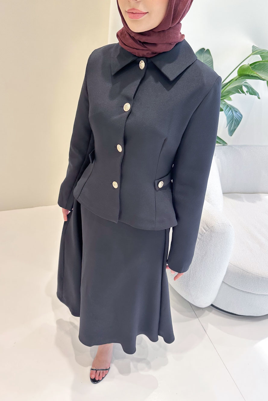 Kaira Gold Düğmeli Etekli Takım - Siyah