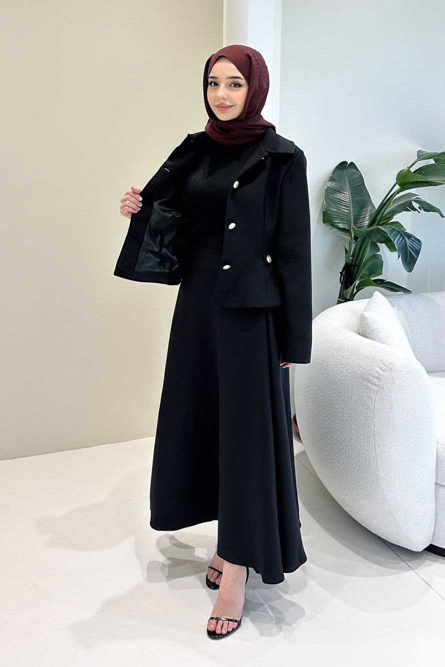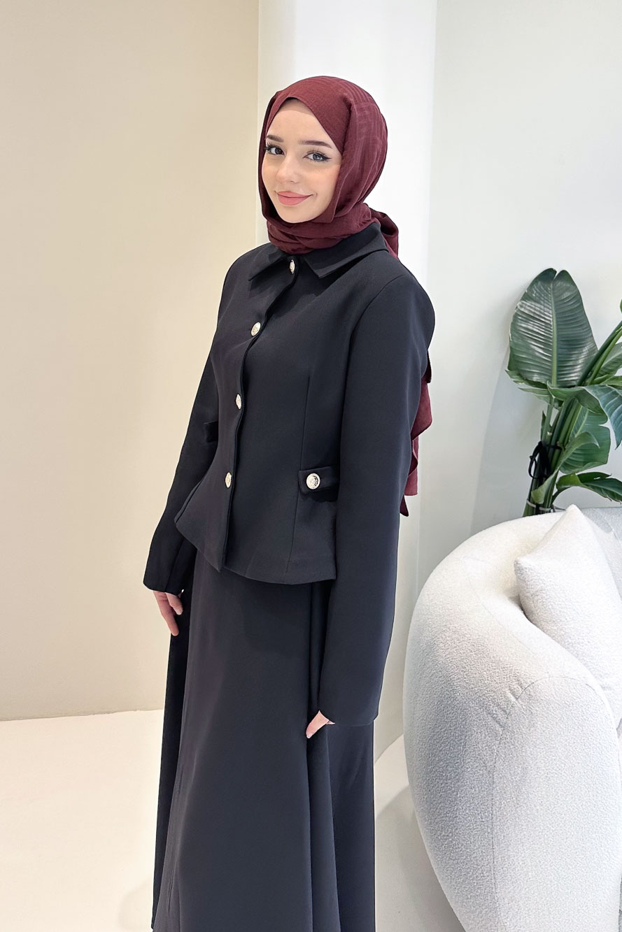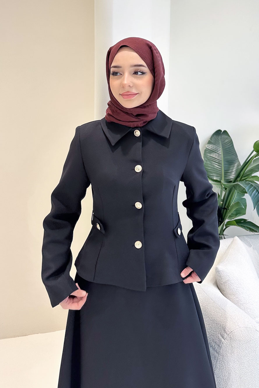 Kaira Gold Düğmeli Etekli Takım - Siyah