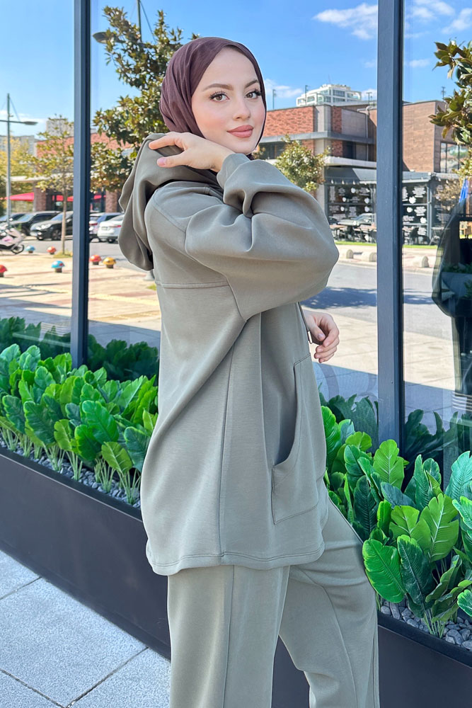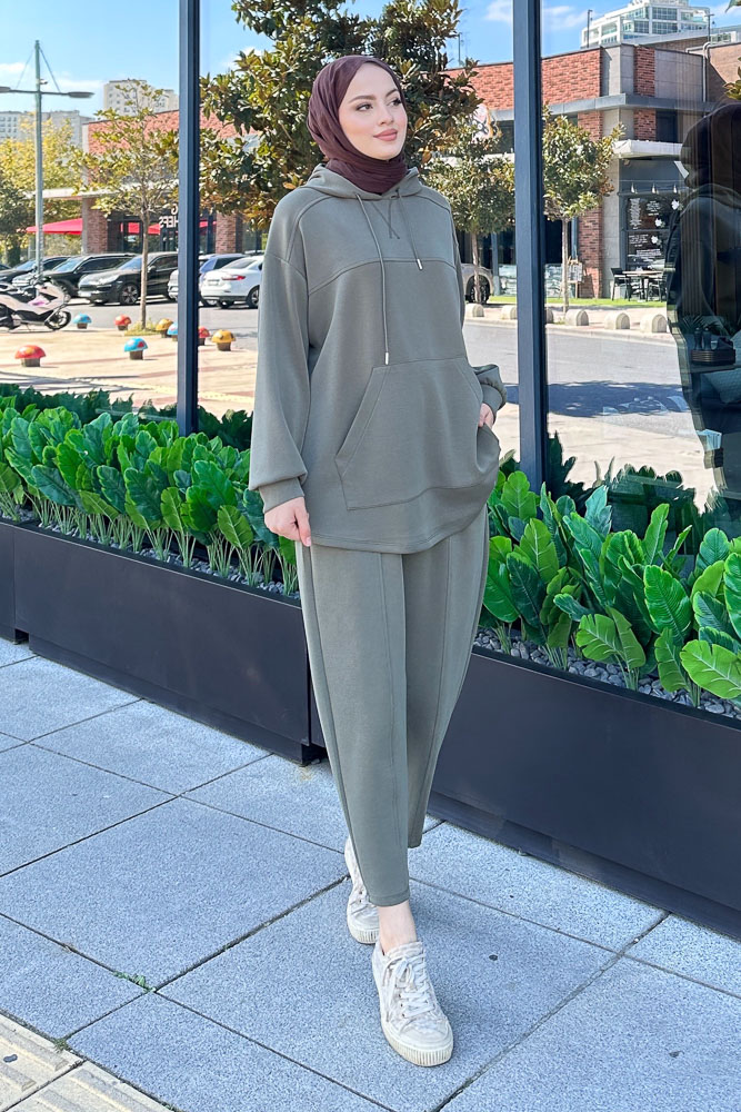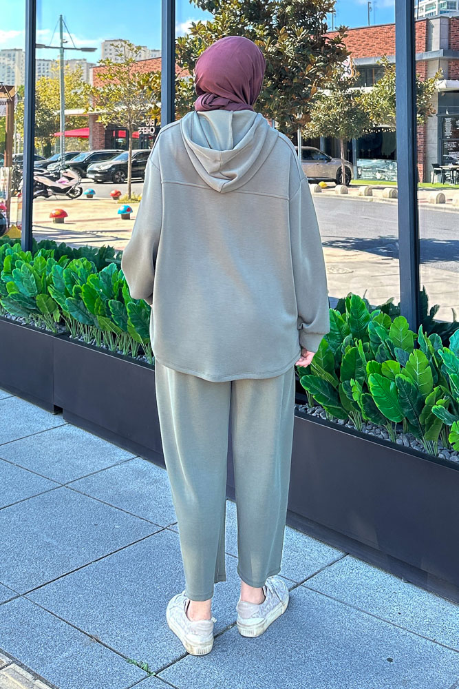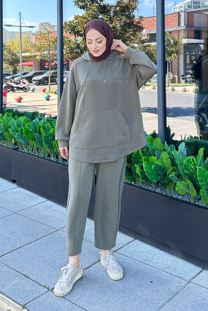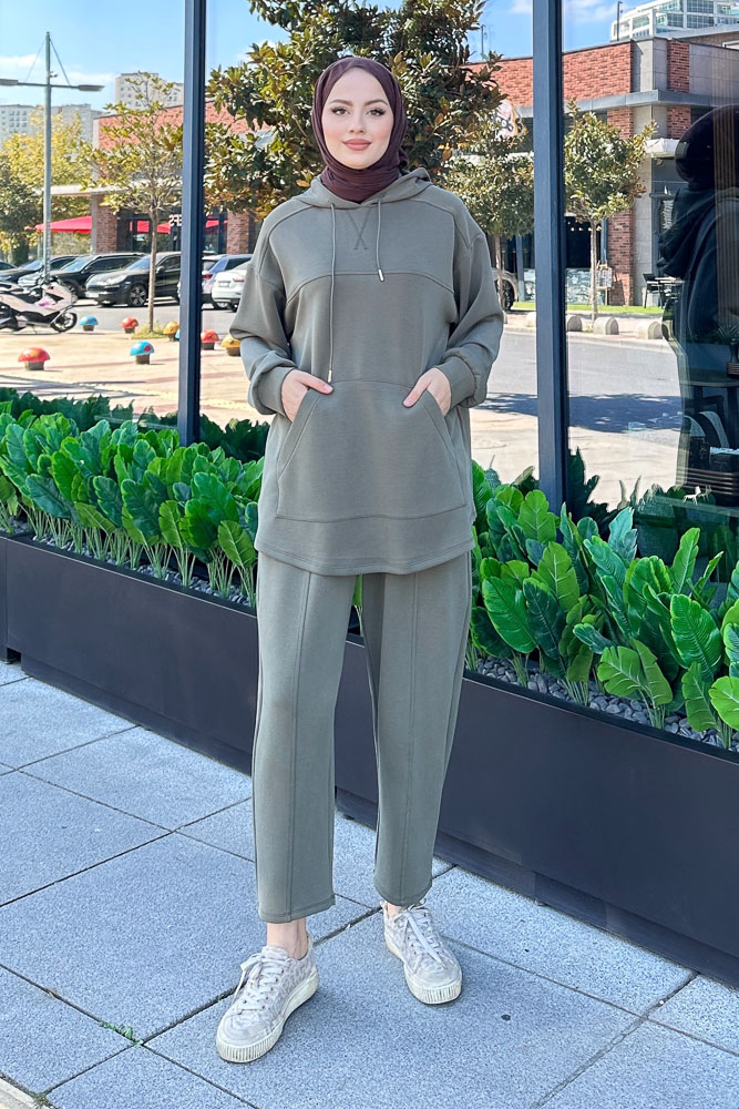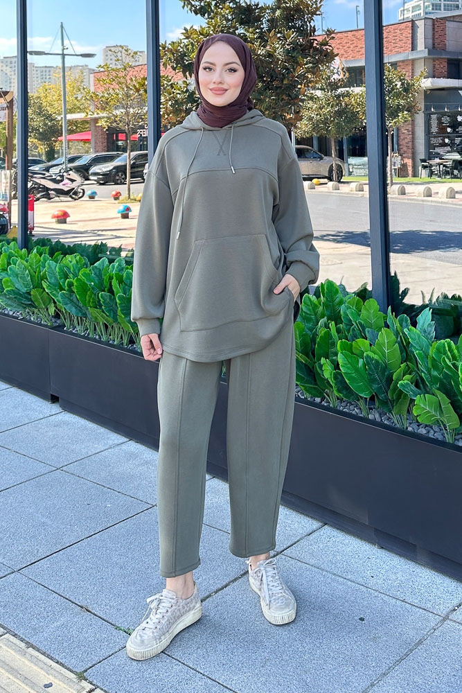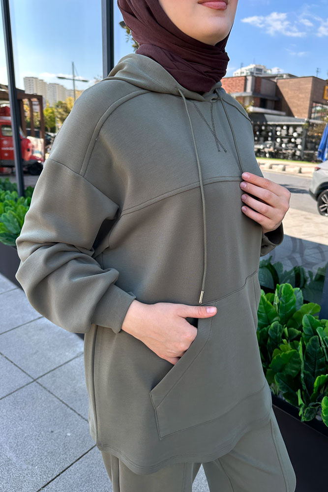 Kanguru Cepli Kesik Detaylı Takım - Haki