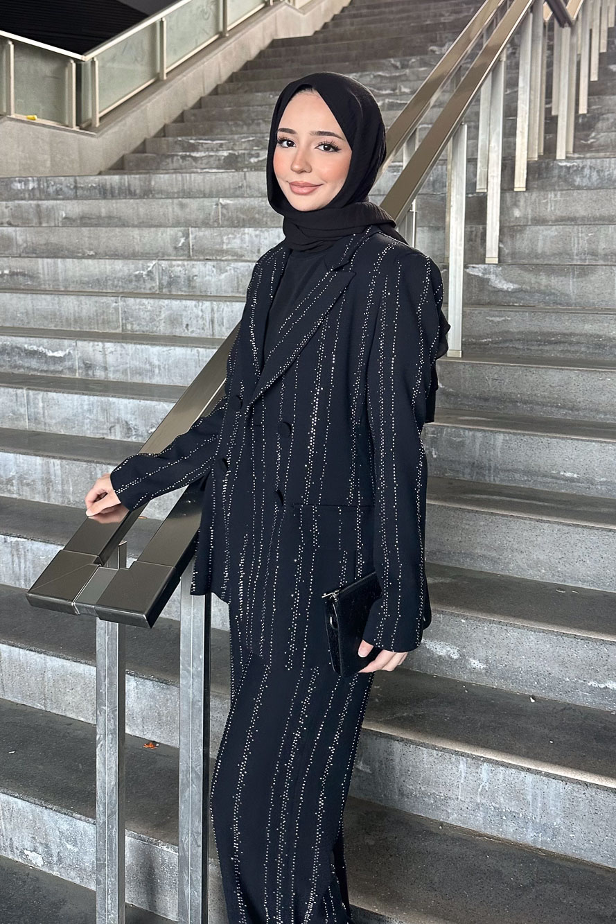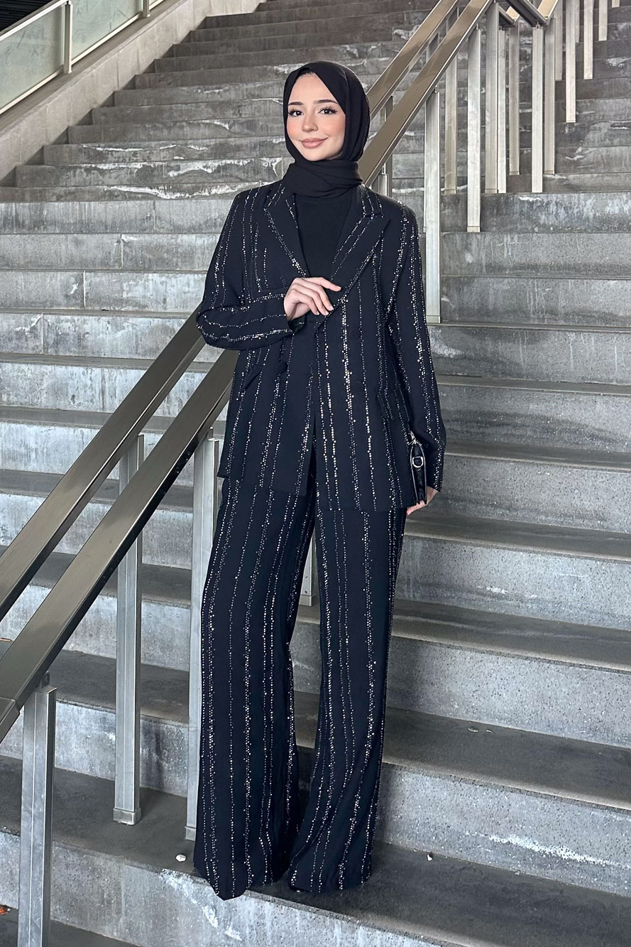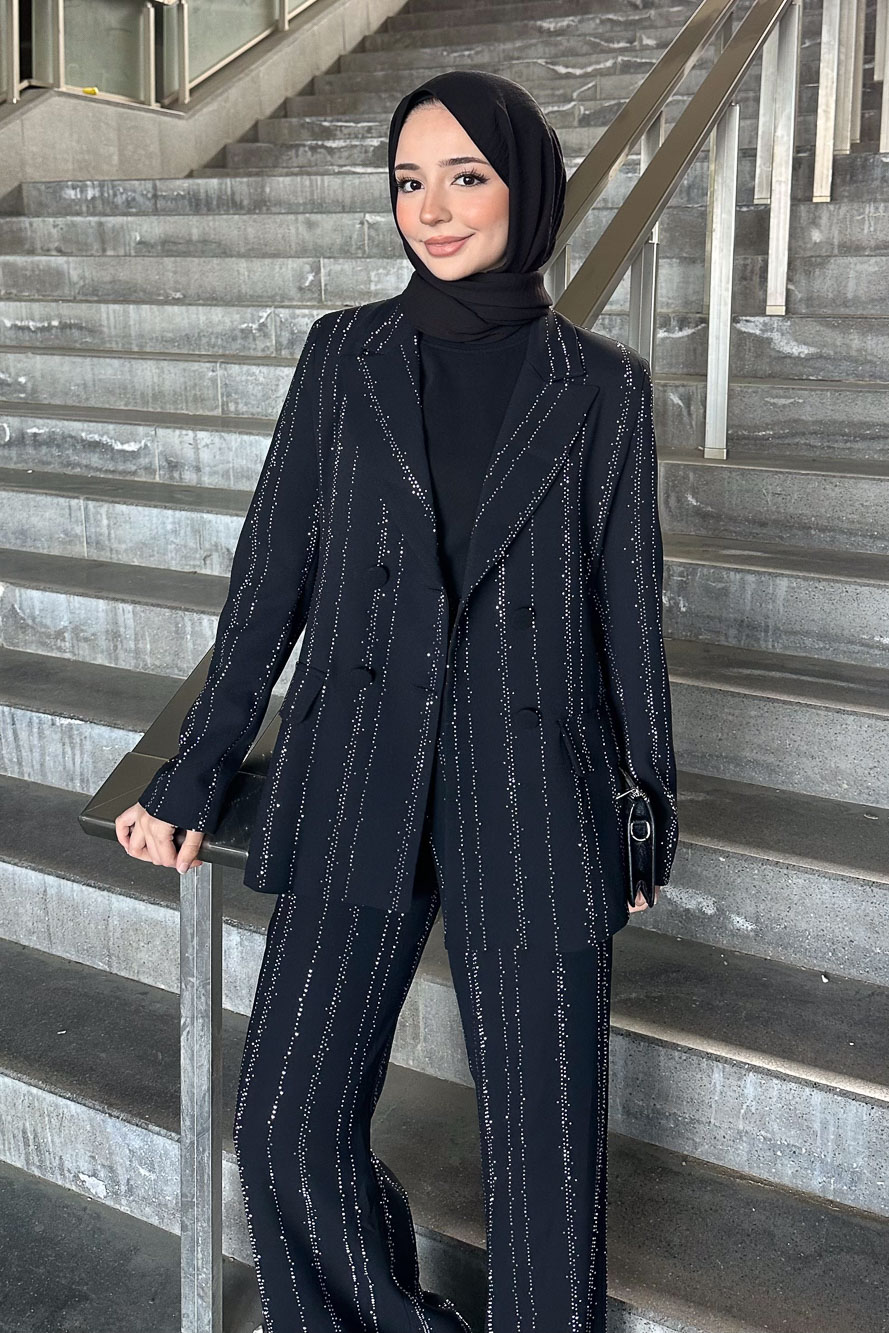Line Taş Detaylı Pantolon Ceket Takım - Siyah