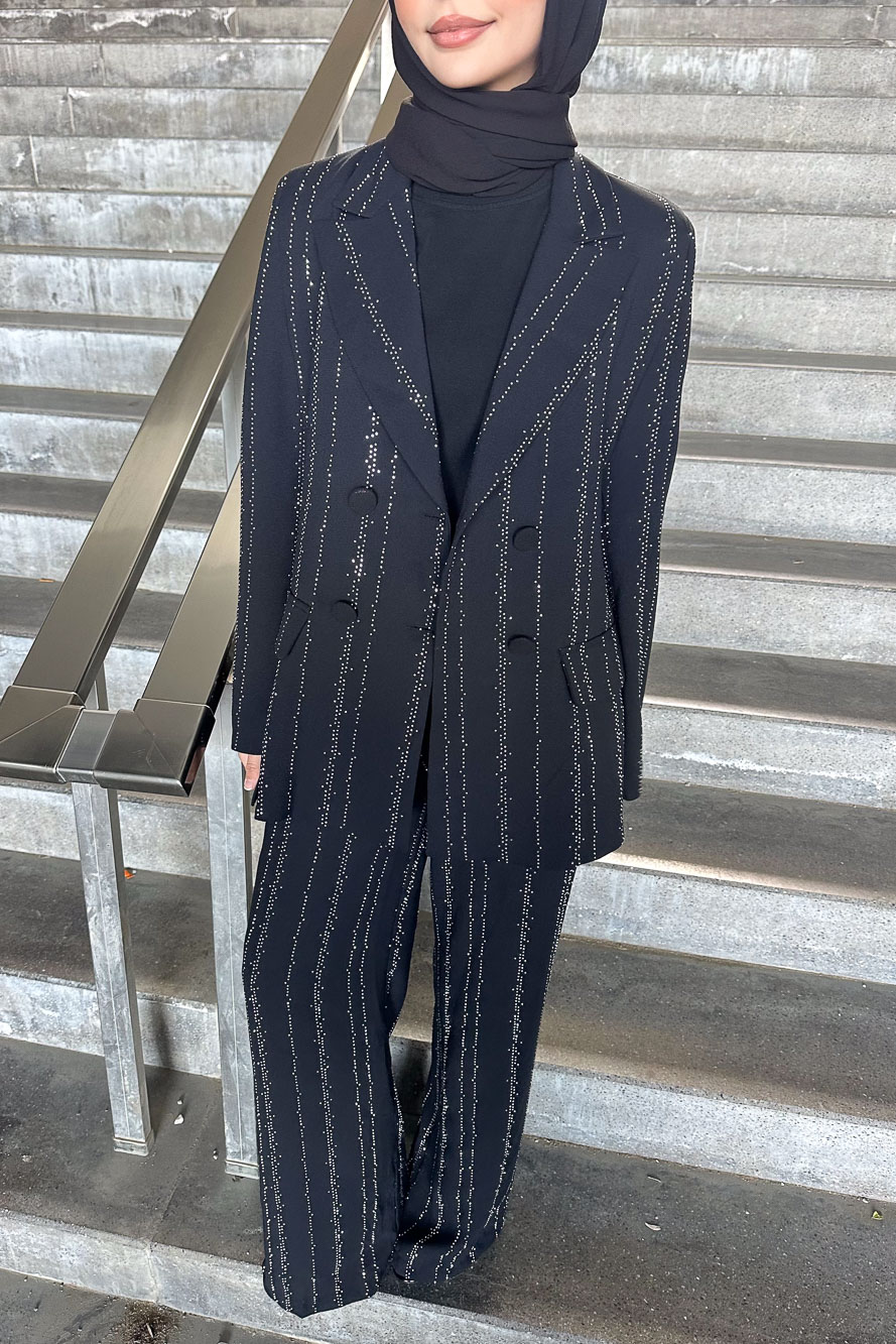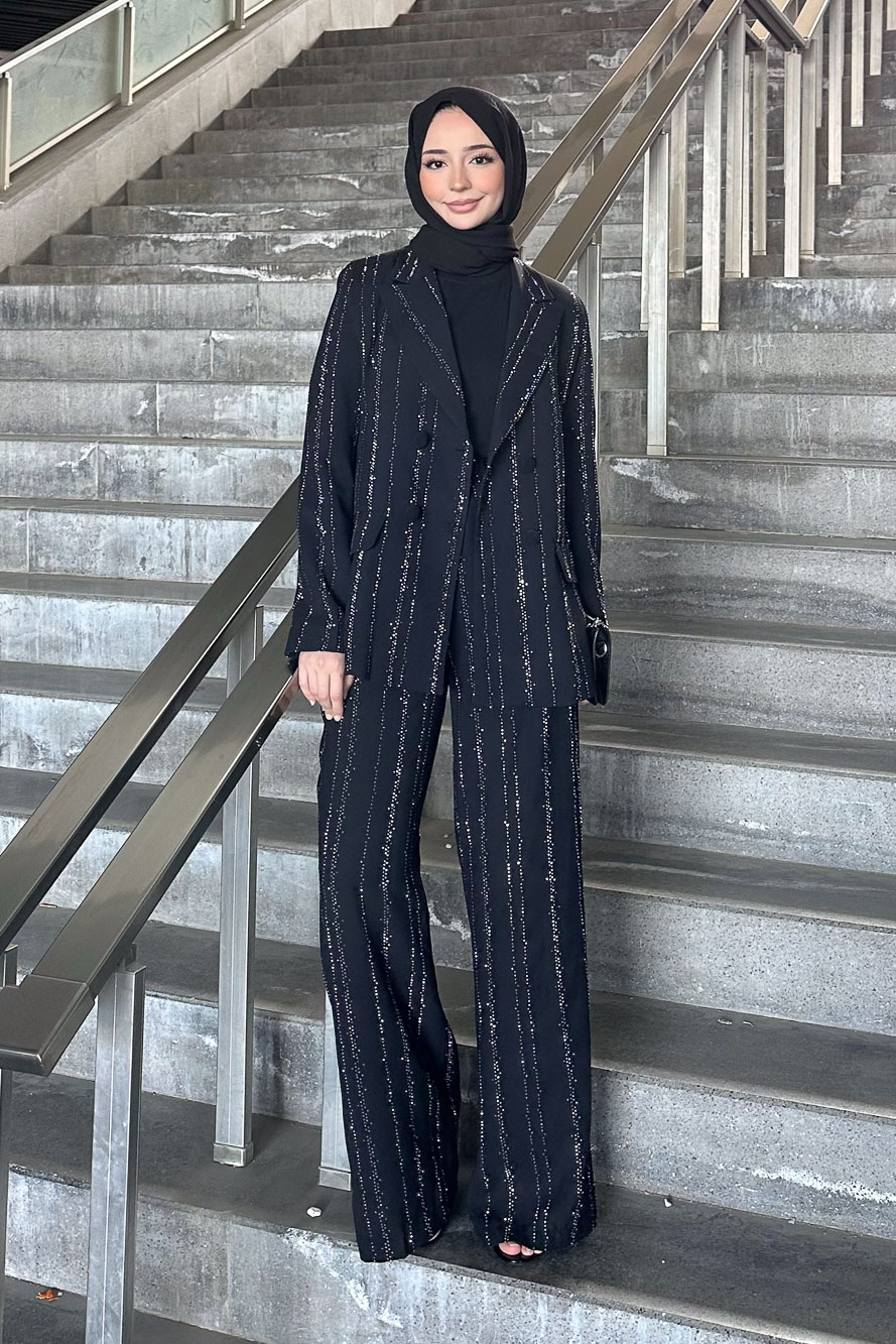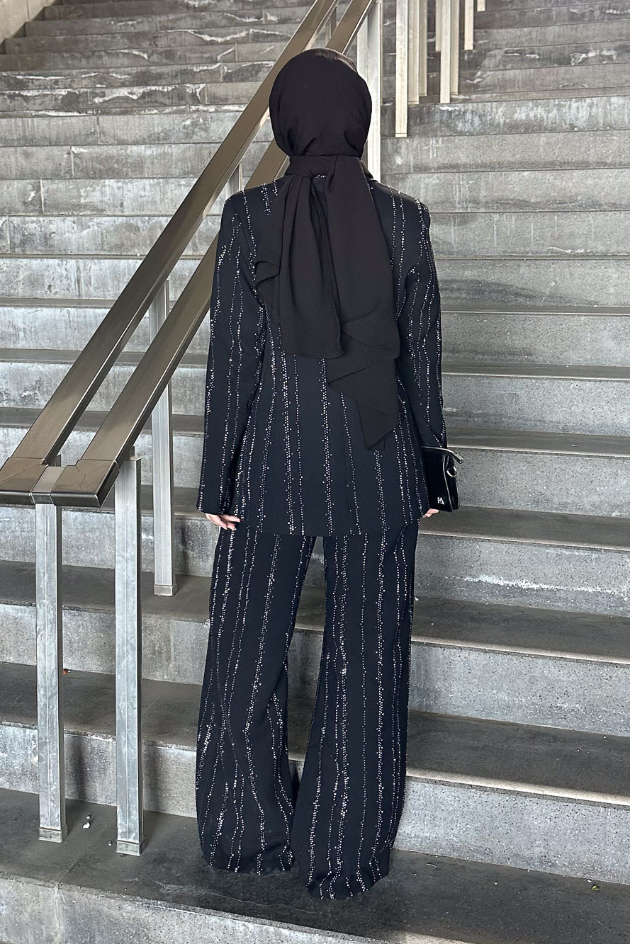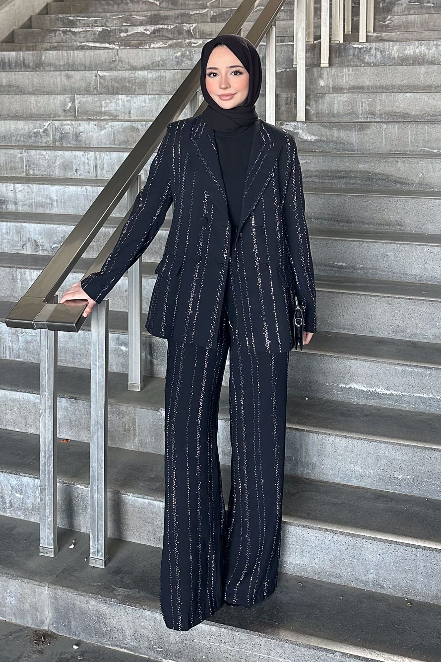 Line Taş Detaylı Pantolon Ceket Takım - Siyah