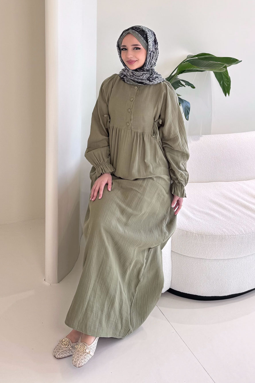 Hafif ve nefes alan müslin dokusuyla yaz aylarında konforlu ve zarif bir görünüm sunar.