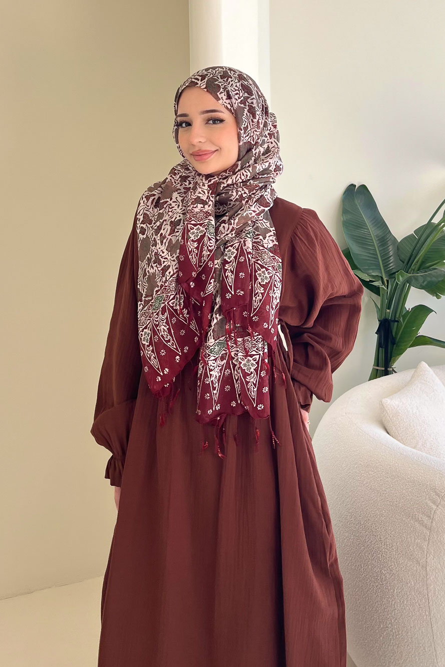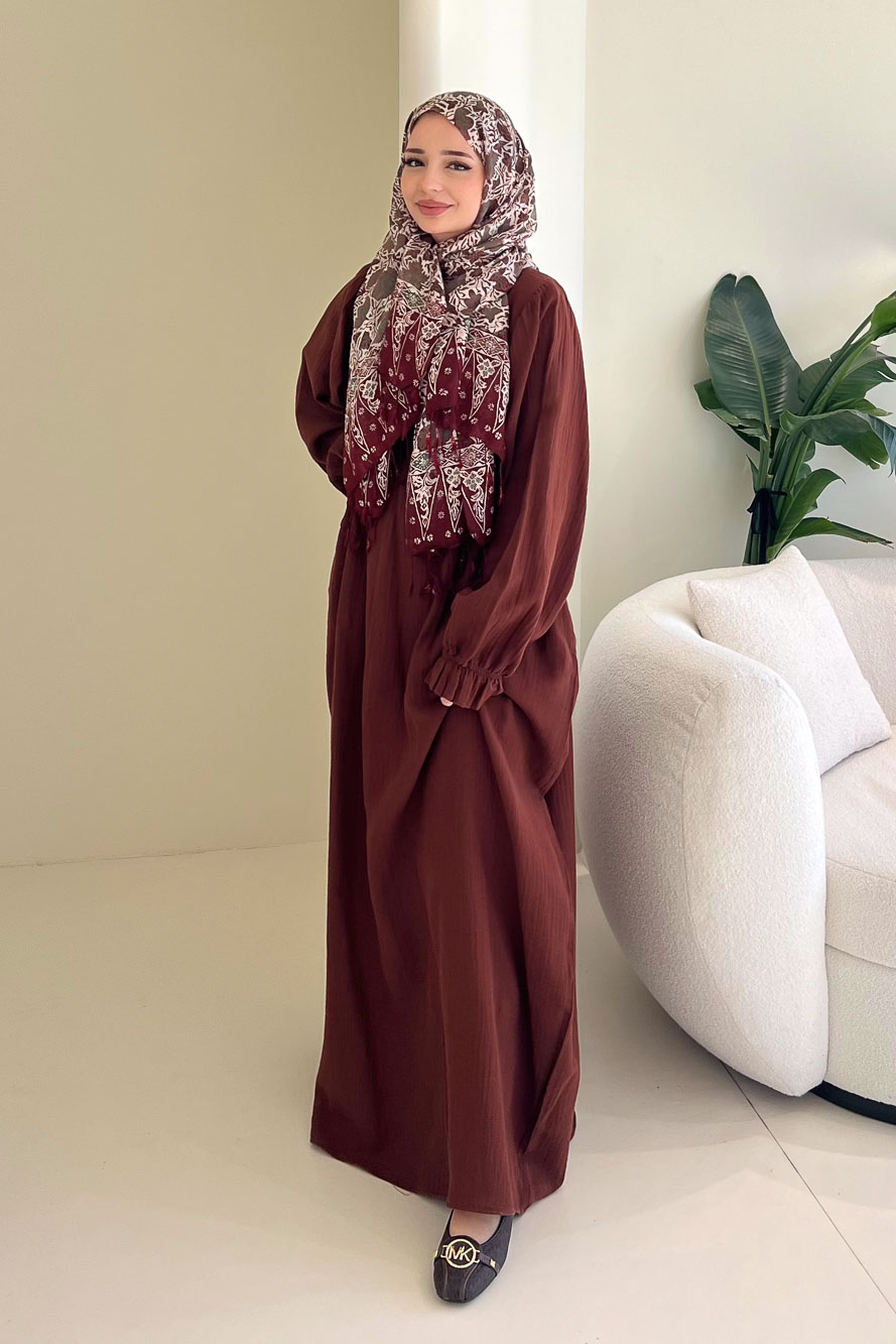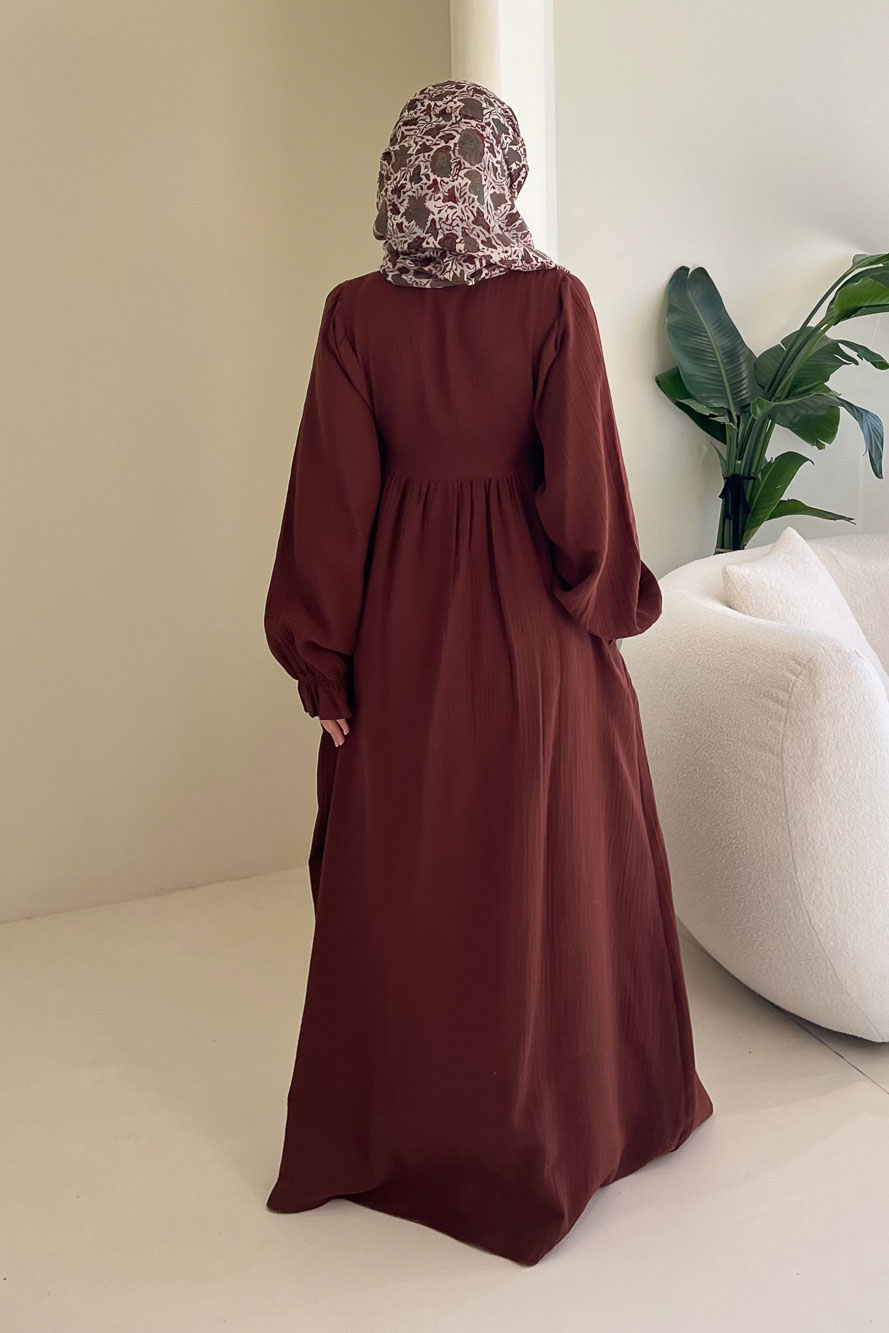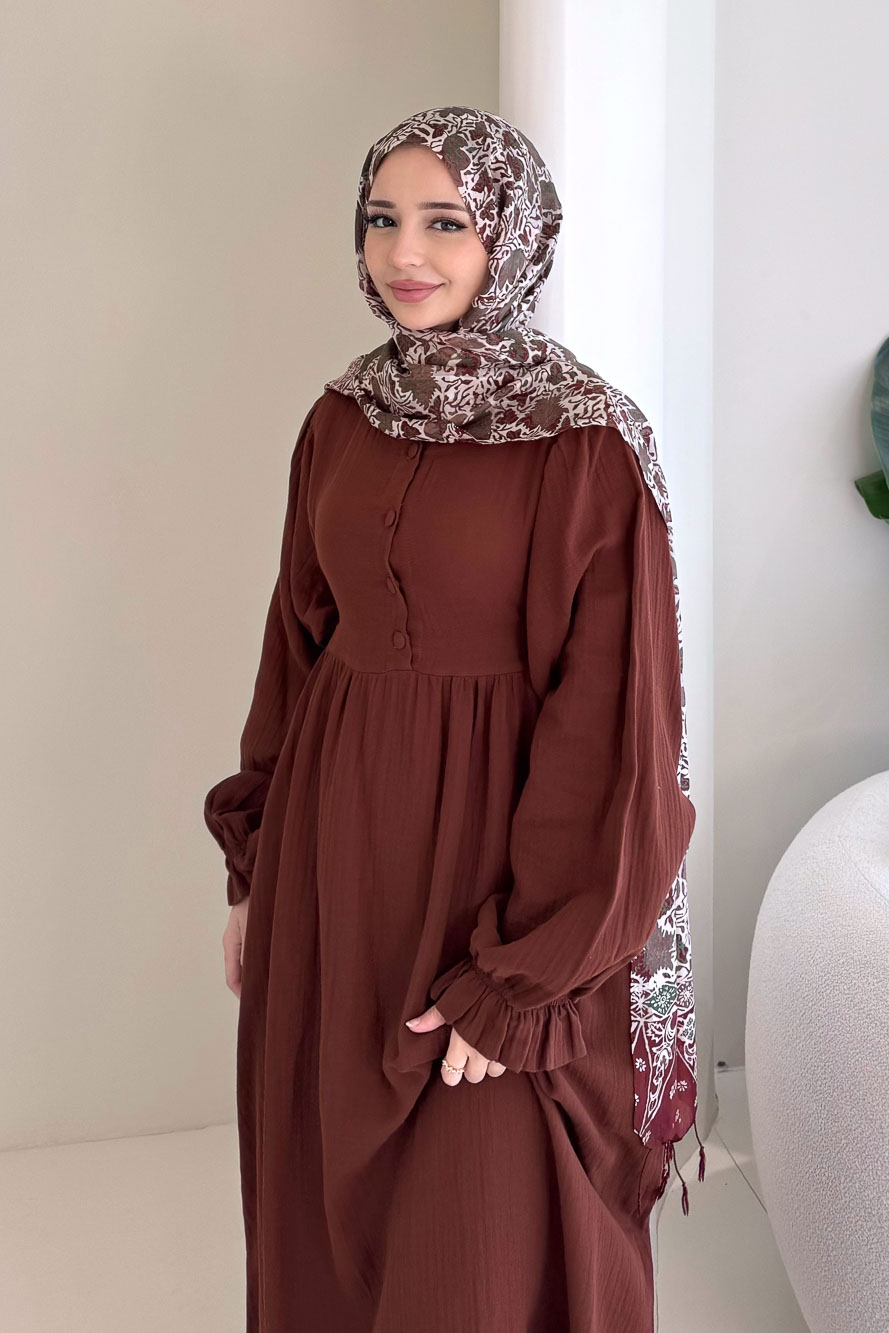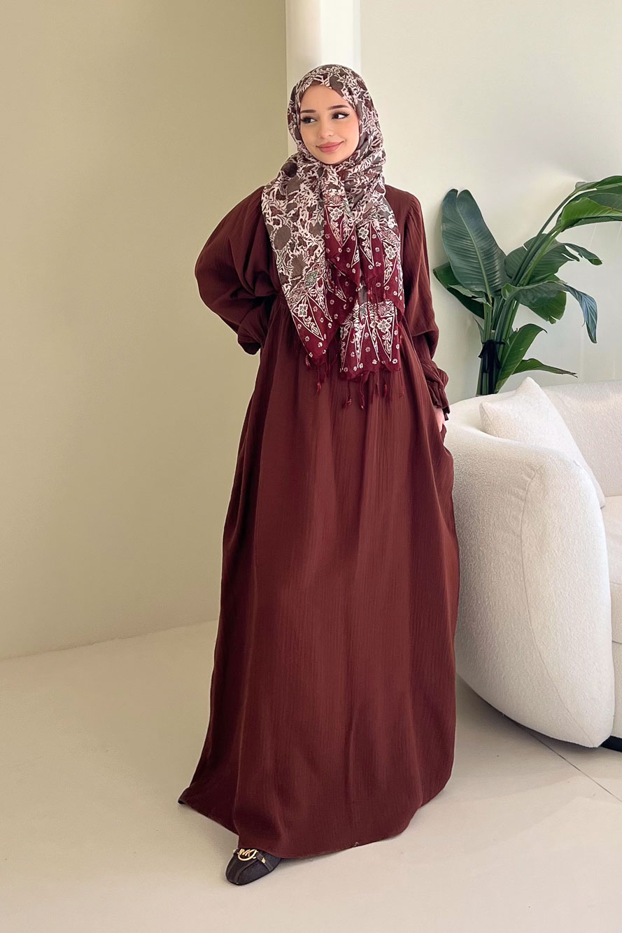 Hafif ve nefes alan müslin dokusuyla yaz aylarında konforlu ve zarif bir görünüm sunar.