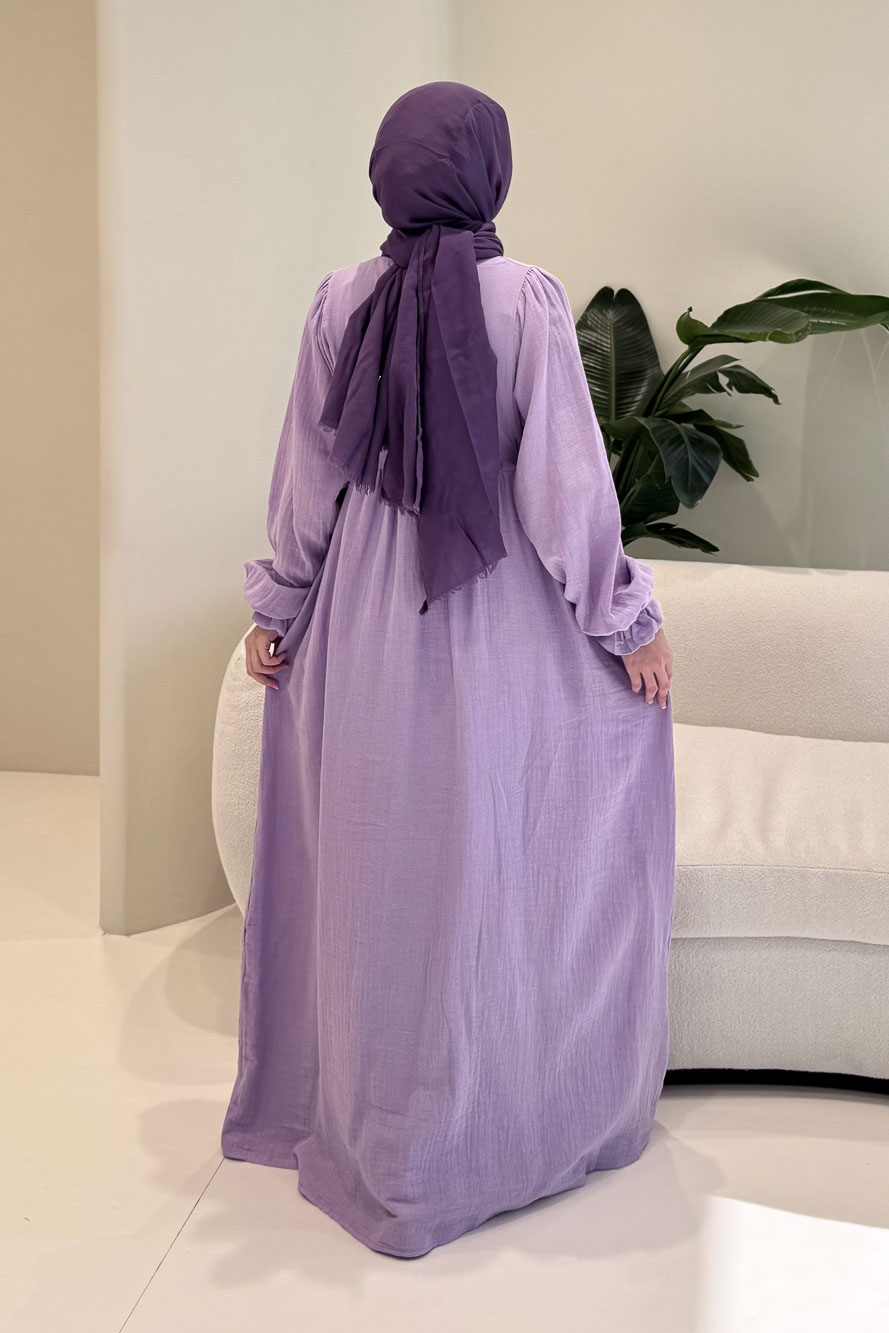 Hafif ve nefes alan müslin dokusuyla yaz aylarında konforlu ve zarif bir görünüm sunar.