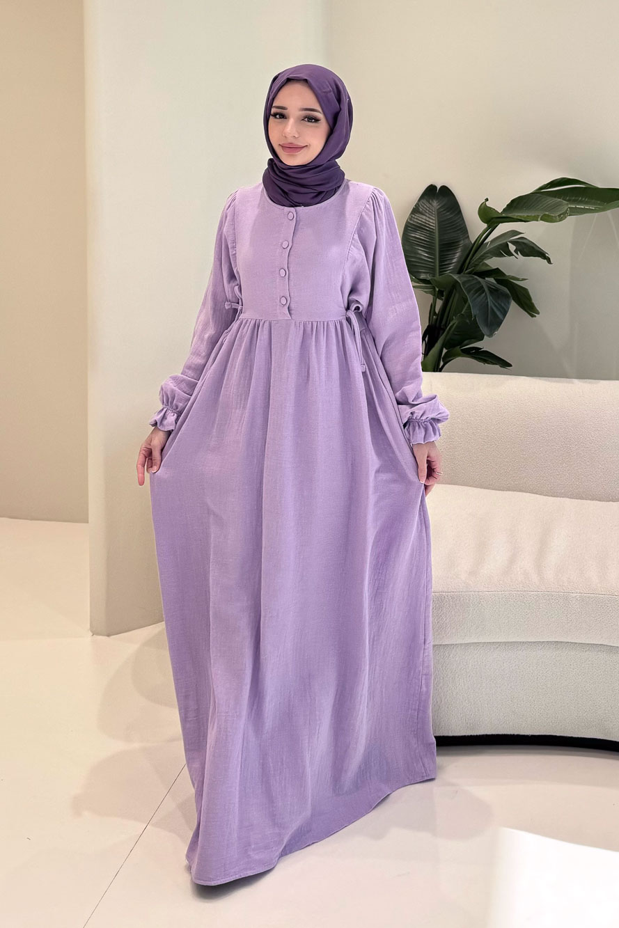 Liorena Yandan Bağlamalıi Müslin Elbise - Lila