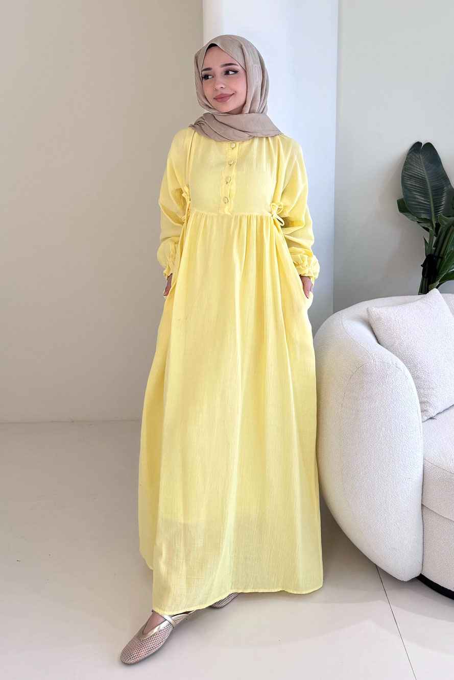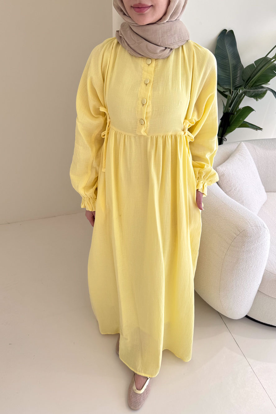 Liorena Yandan Bağlamalıi Müslin Elbise - Sarı