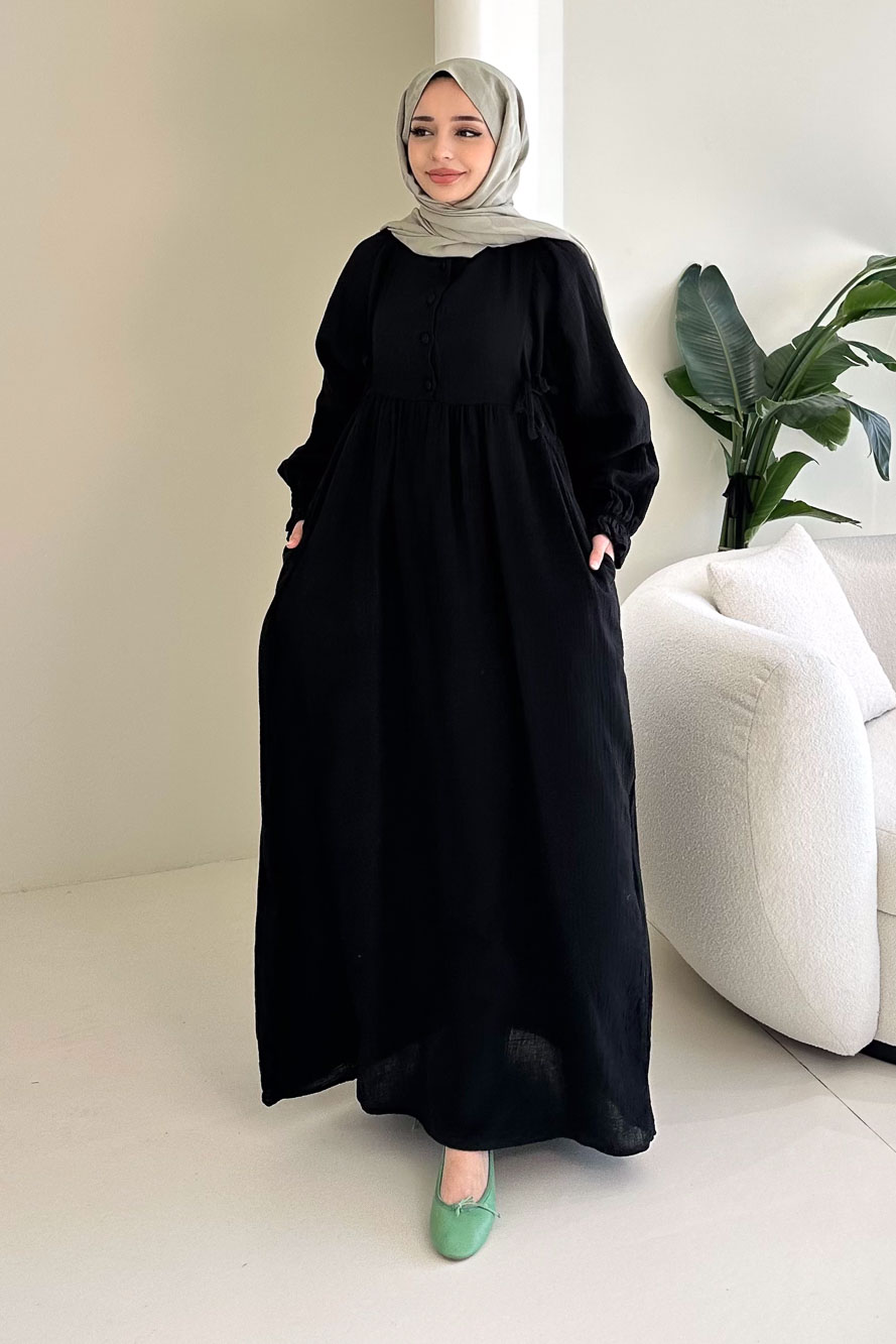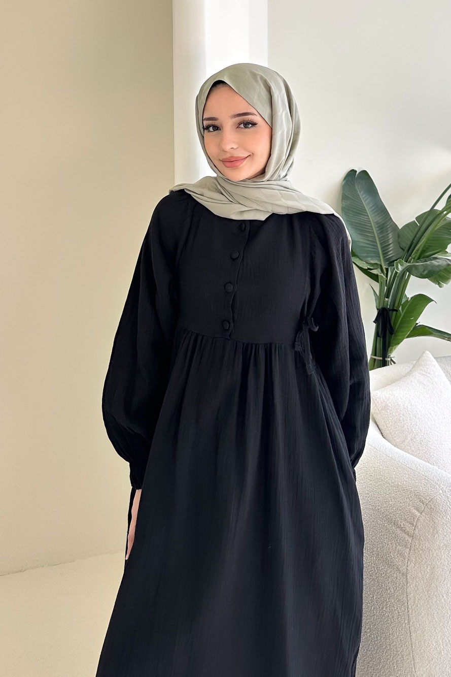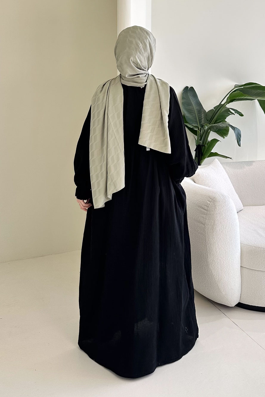 Hafif ve nefes alan müslin dokusuyla yaz aylarında konforlu ve zarif bir görünüm sunar.
