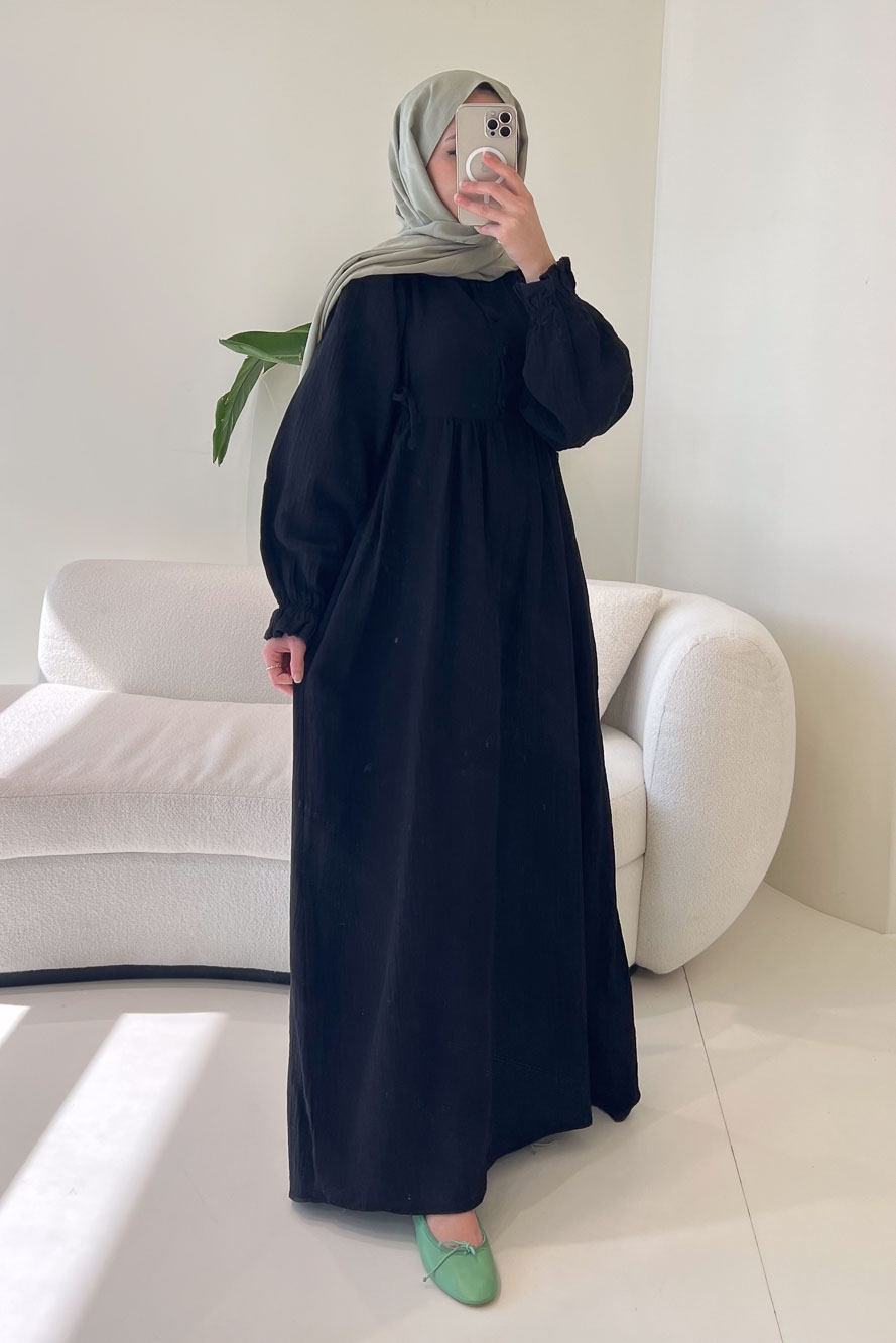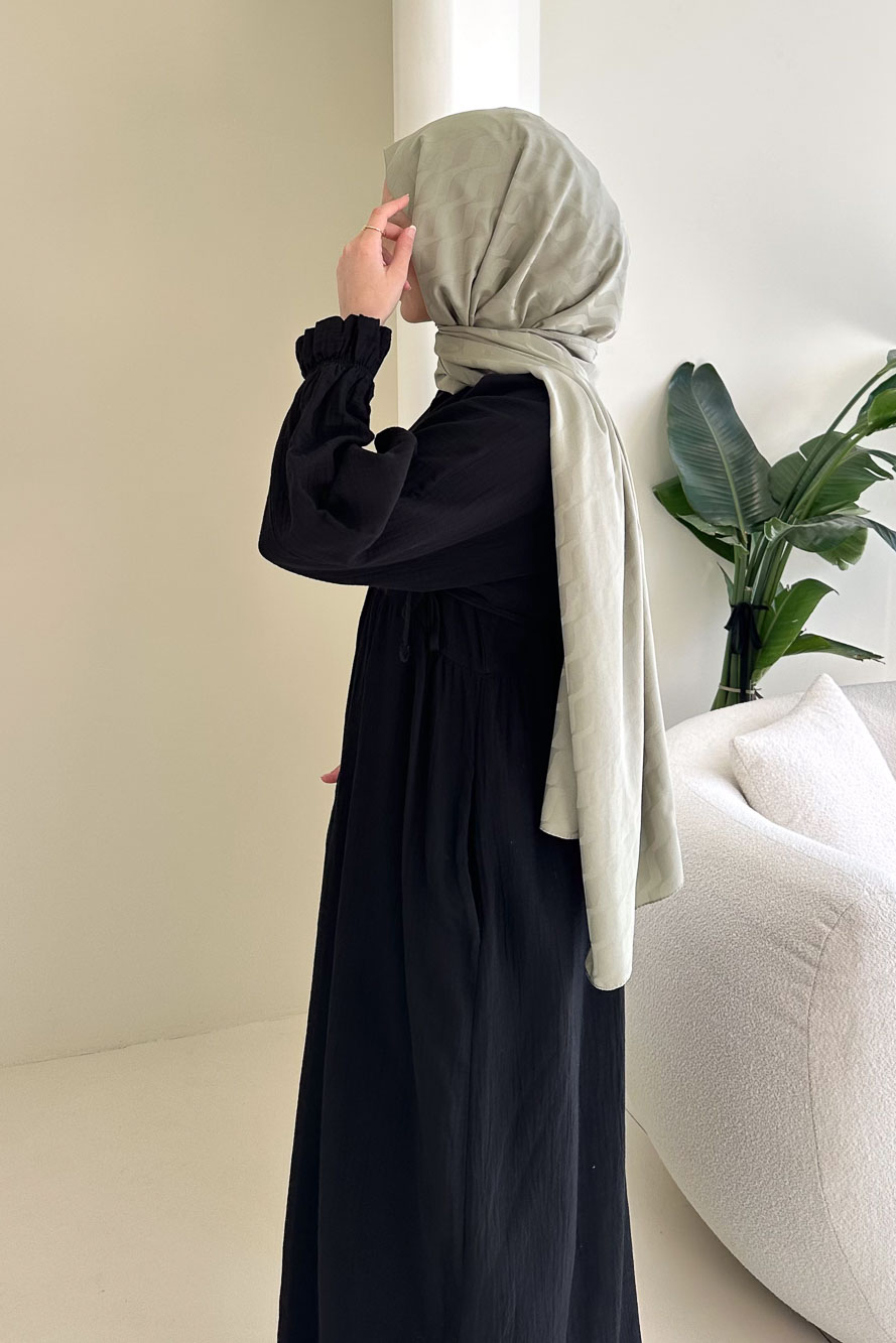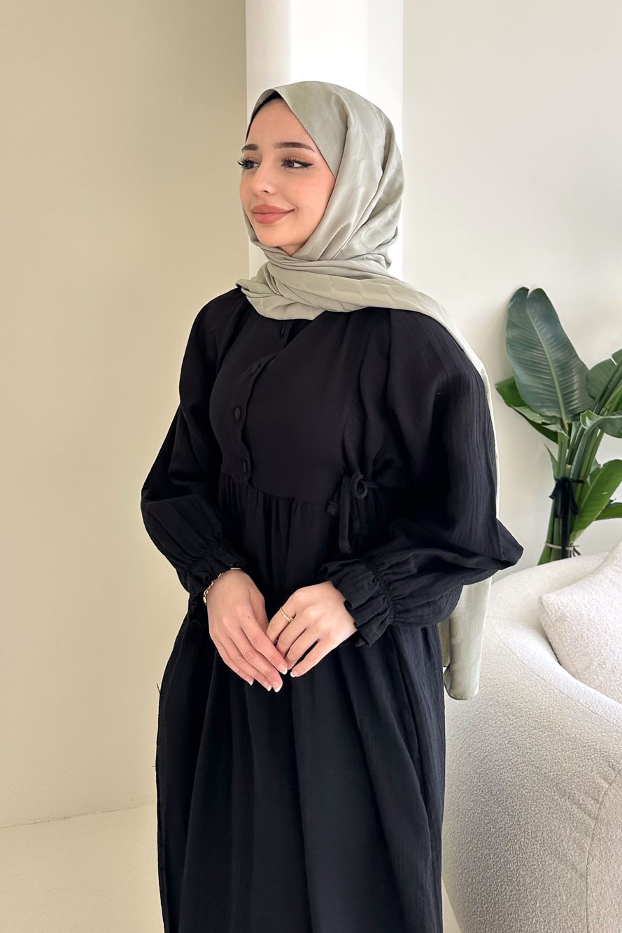 Hafif ve nefes alan müslin dokusuyla yaz aylarında konforlu ve zarif bir görünüm sunar.